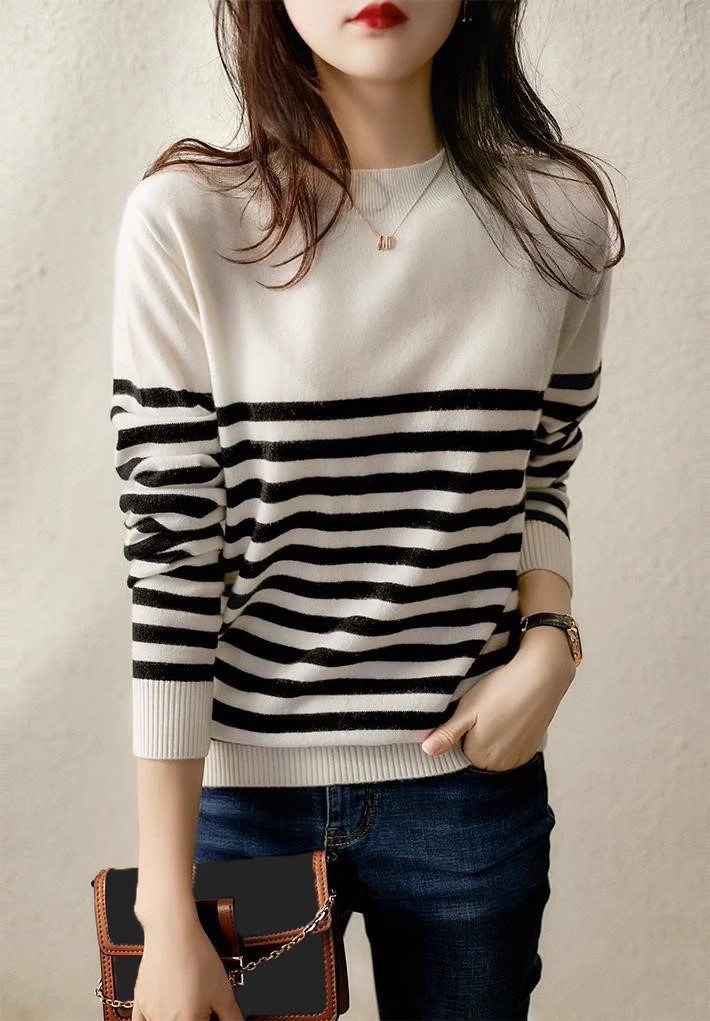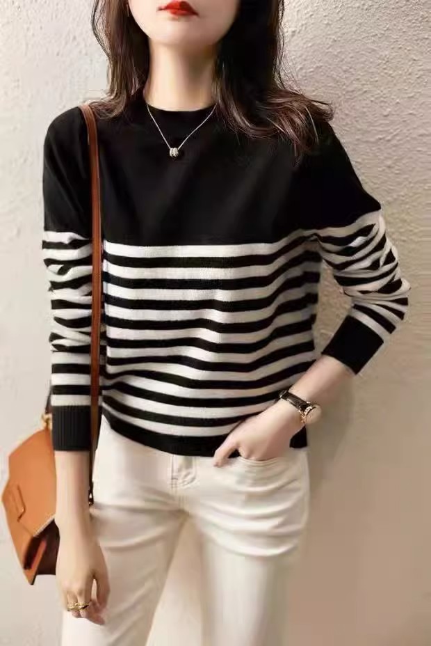 ニット セーター レディース ニットソー トップス 長袖 春ニット インナー トップス 春 秋 冬 オフィス シンプル ボーダー プルオーバー ニット カットソー きれいめ ストライプ柄 ニットソー