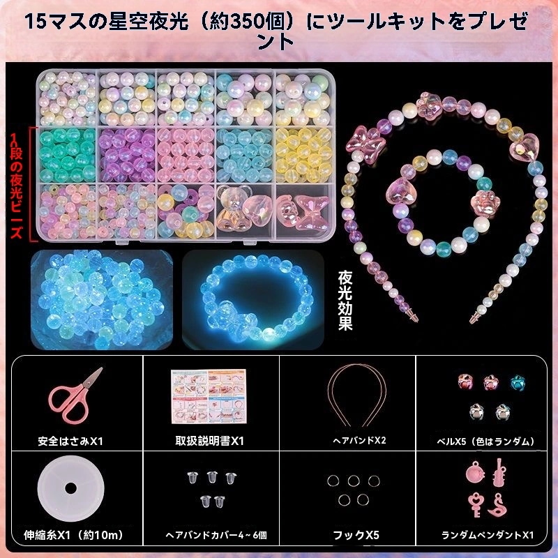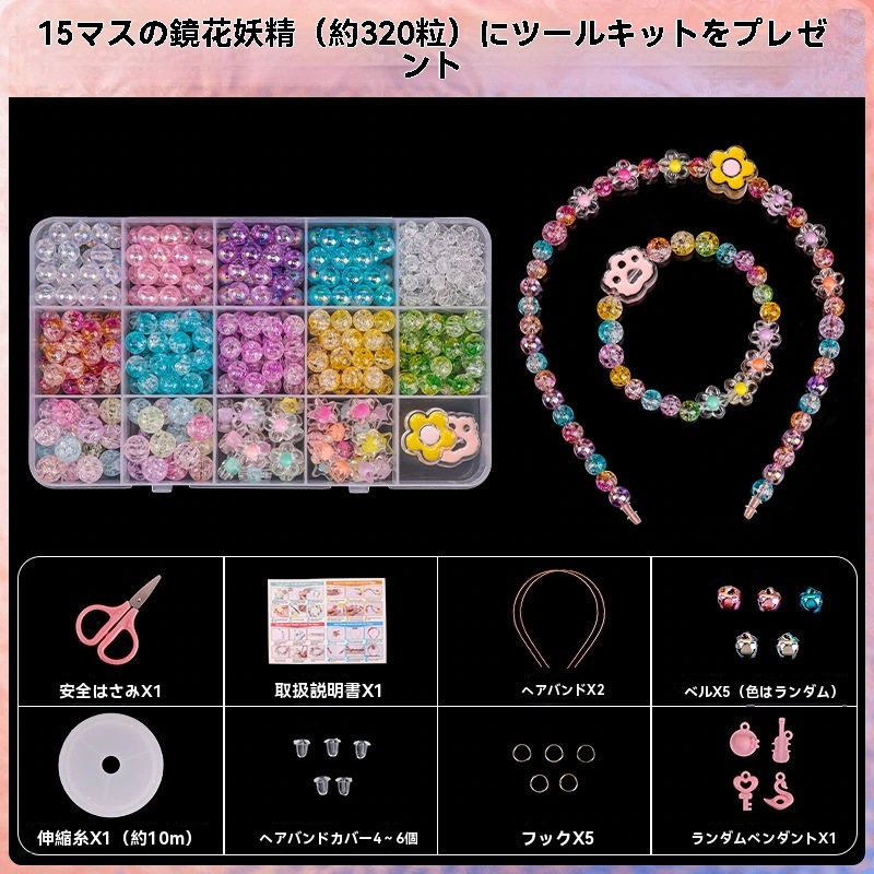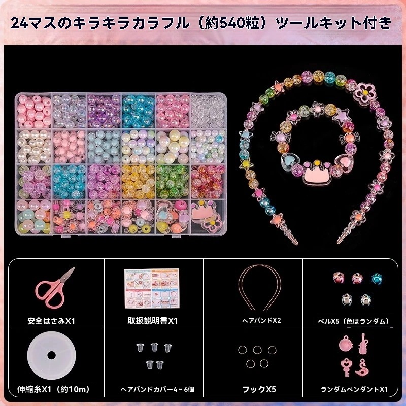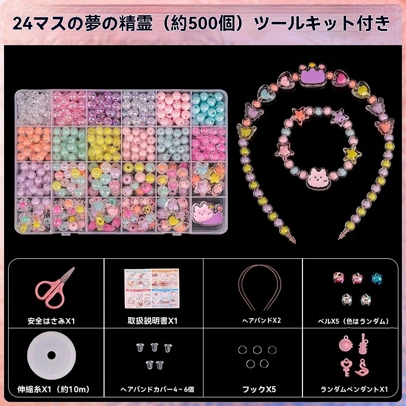 子供ビーズ手作り diy材料バッグ 女の子ビーズ宝石,ブレスレット,ネックレス,手串 女の子知育玩具 ギフト