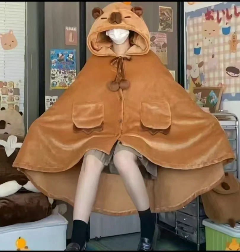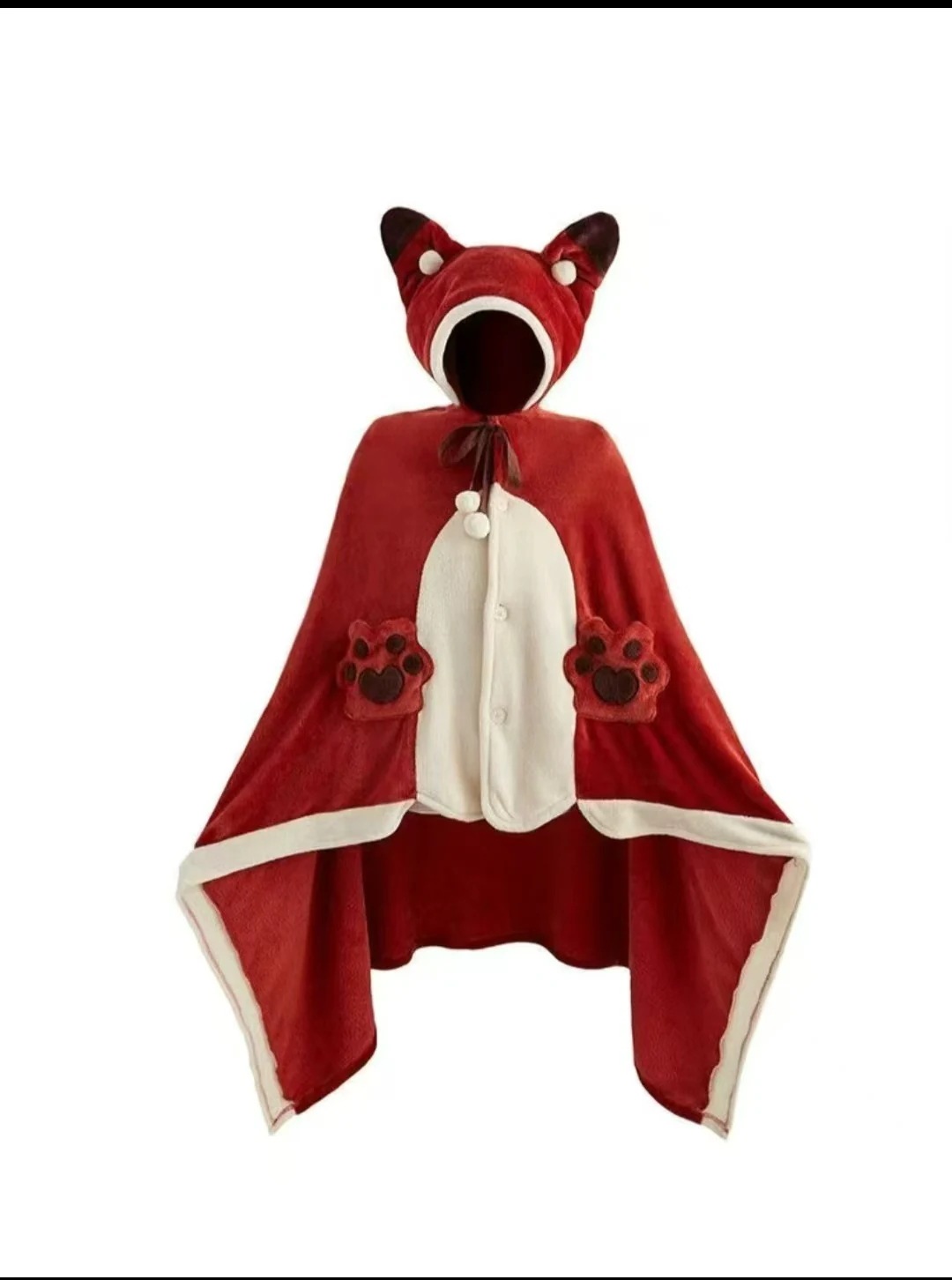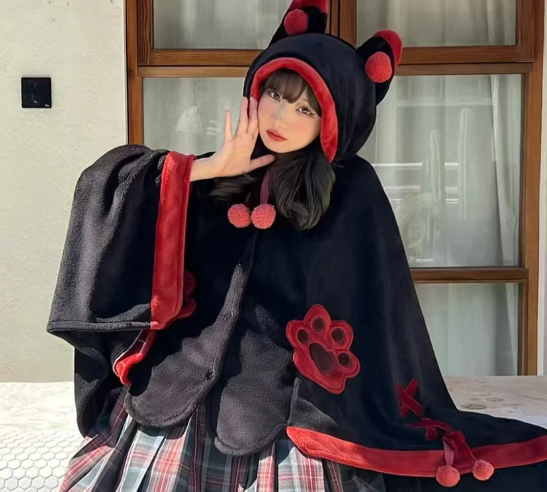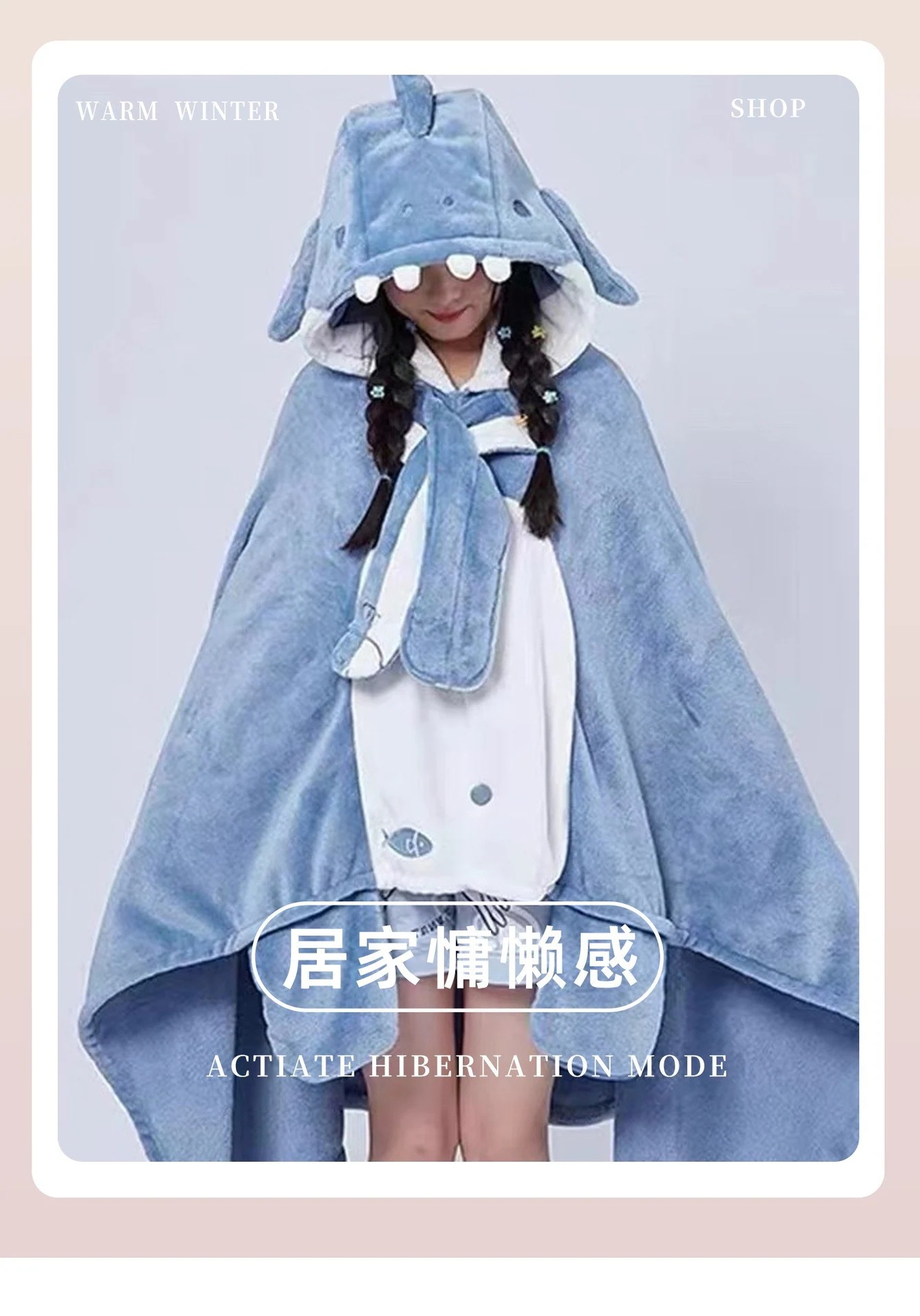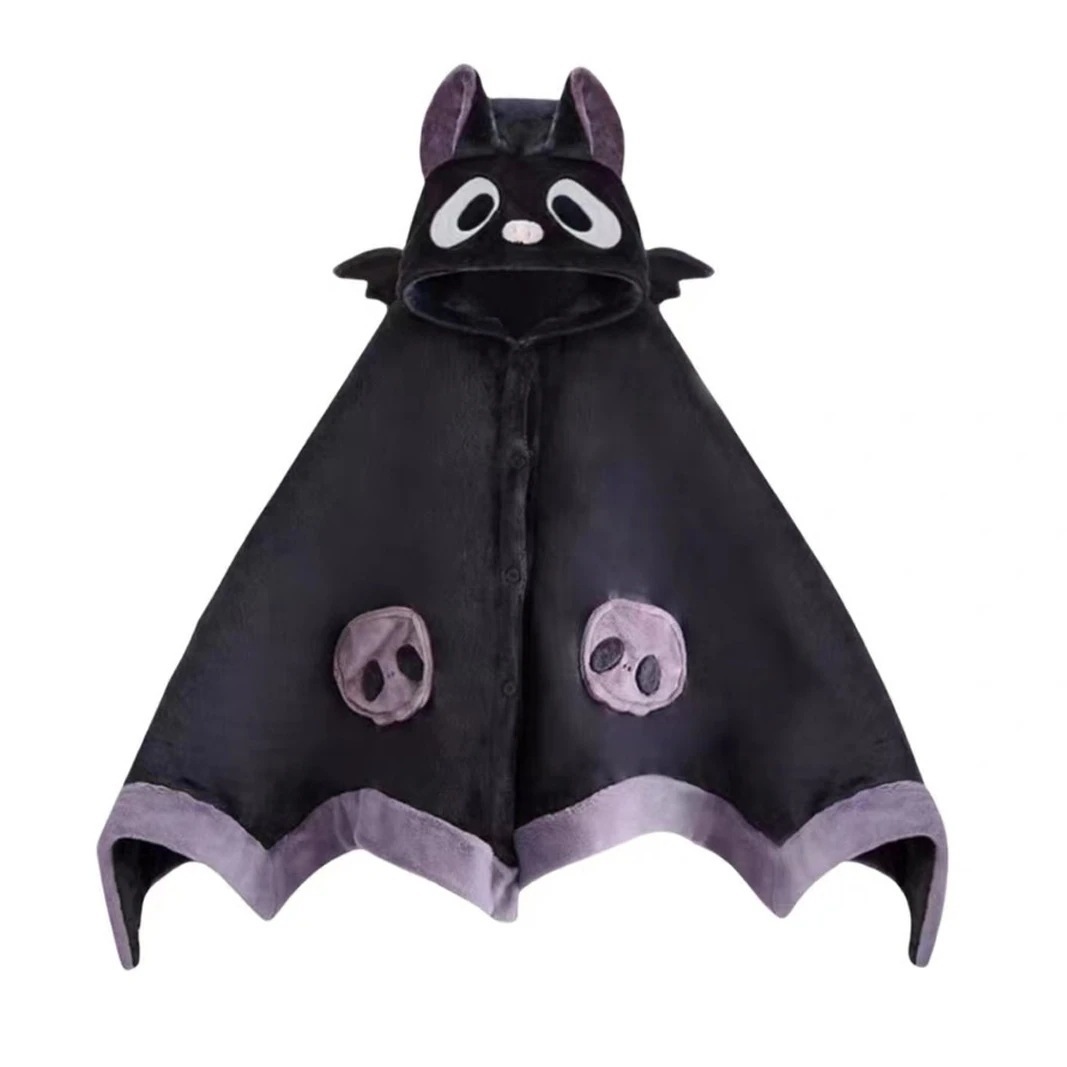【本日限定】着ぐるみパジャマ 少女風アニメコウモリ柄コーラルフリースパジャマ 2026新作 厚手ショール付きフード付きホームウェア