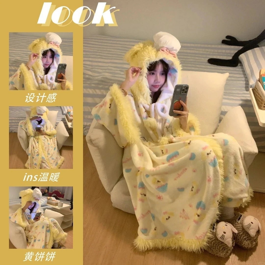 【本日限定】着ぐるみパジャマ シェフ犬ビスケットケープパジャマ レディース 秋冬コーラルフリース厚手裏地付きパジャマ可愛いバスローブホームウェアセット