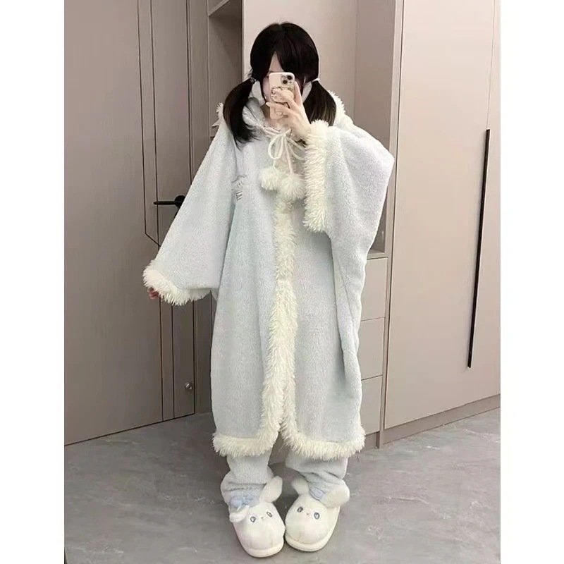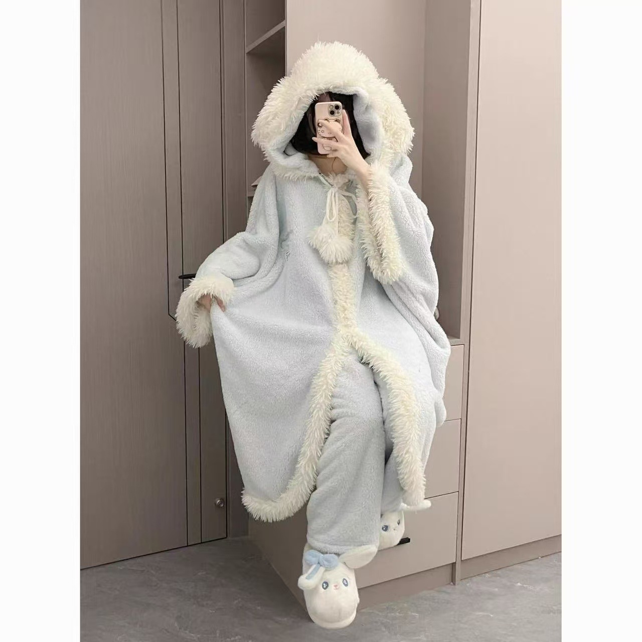 【人気商品】着ぐるみパジャマ 2026冬新作 可愛いソフト系パジャマ コーラル犬 少女用 裏地付き厚手 ケープ付きホームウェアセット