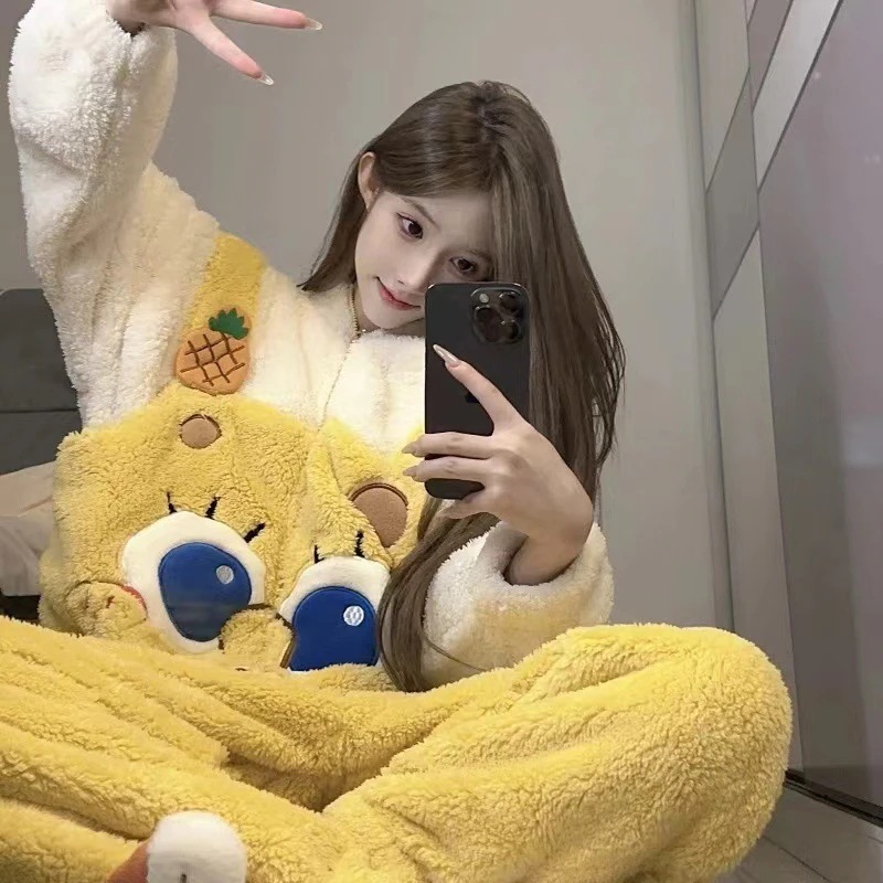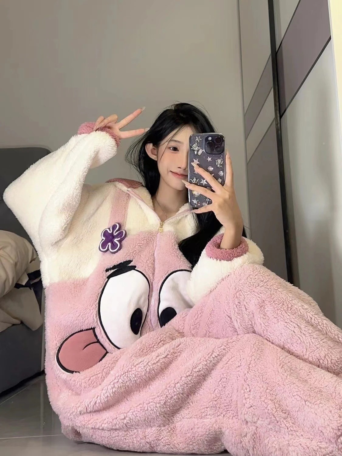 【本日限定】着ぐるみパジャマ 可愛いピンク大星コーラルフリースパジャマ レディース 裏地付き厚手冬新作 ふわふわワンピースパジャマ ホームウェアガウン