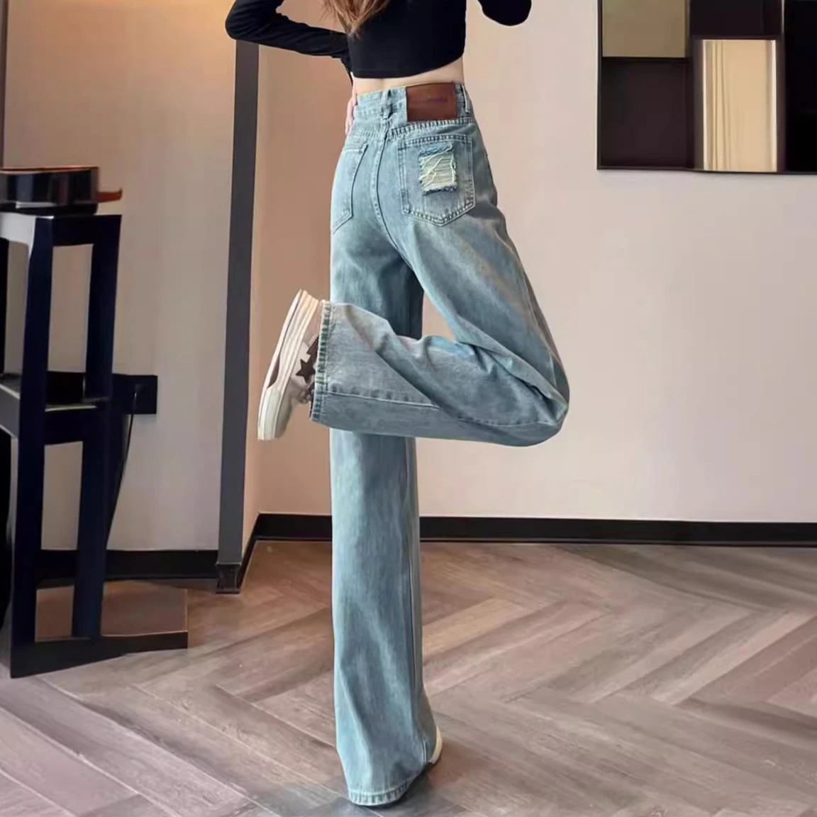 女性用 ジーンズ新作 人気モデルジーンズスリムフィット ハイウエストフレアパンツストレートシルエット