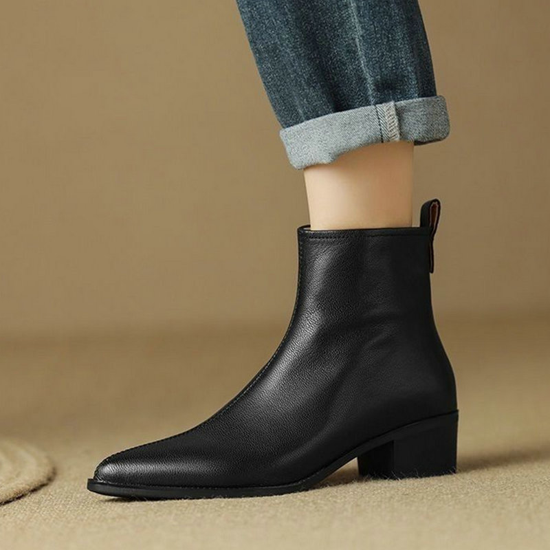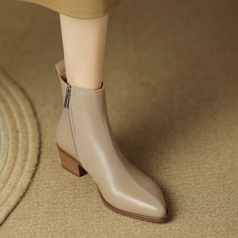 新生活準備 英国スタイル ポインテッドトゥ 太ヒール ショートブーツ ローヒール カジュアル ワイルド ファスナー式 ブーツ ショートブーツ 安定感 毎日履きたい