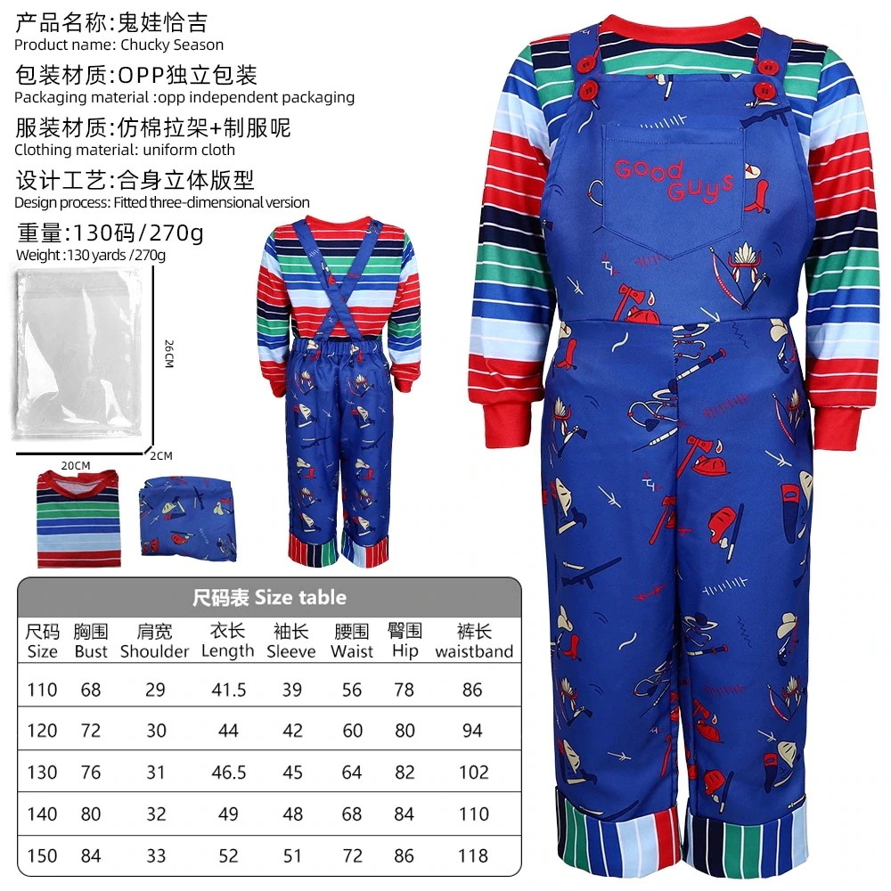 ハロウィン コスプレ ハロウィン 子供 大人 ゴースト人形 チャッキー コスプレ衣装 チャッキー 裏地付き オーバーオール パフォーマンス衣装 コスプレ衣装 子供用スーツ