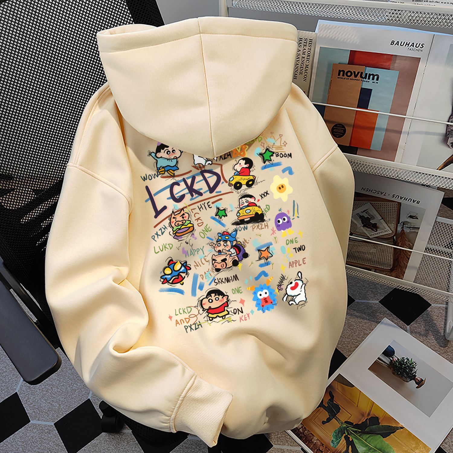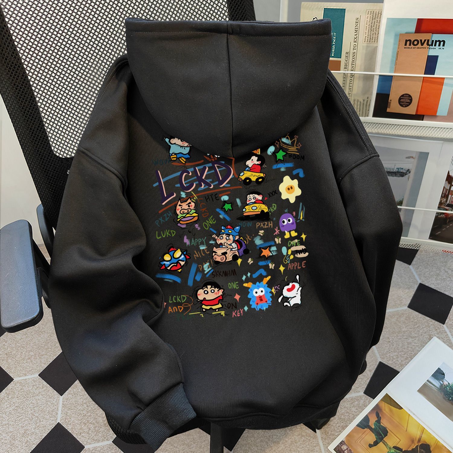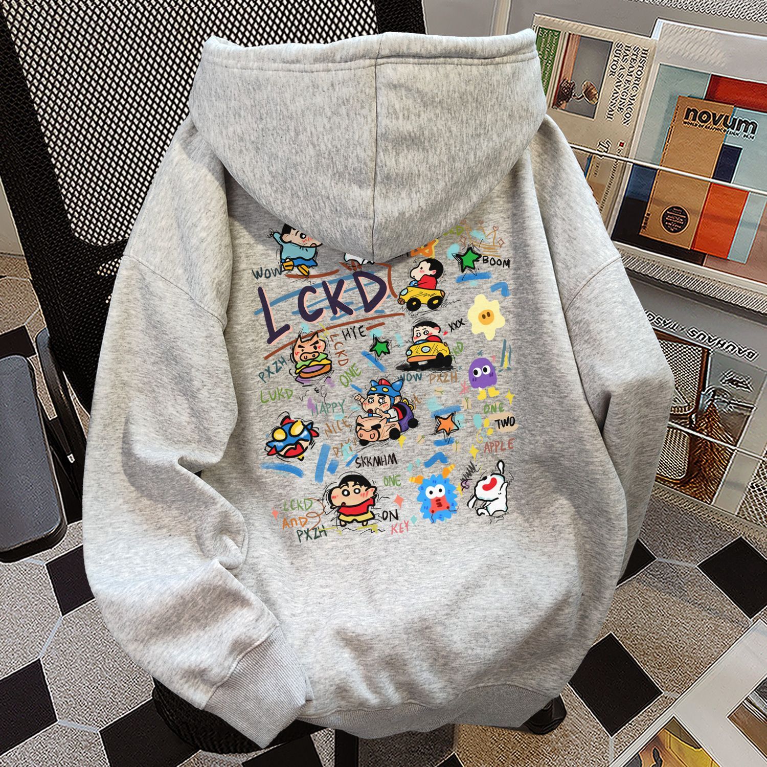 100% 純綿の可愛いクレヨンしんちゃんのフード付きの女性秋冬のゆったりとしたベルベットの厚いカップルの上着の男性