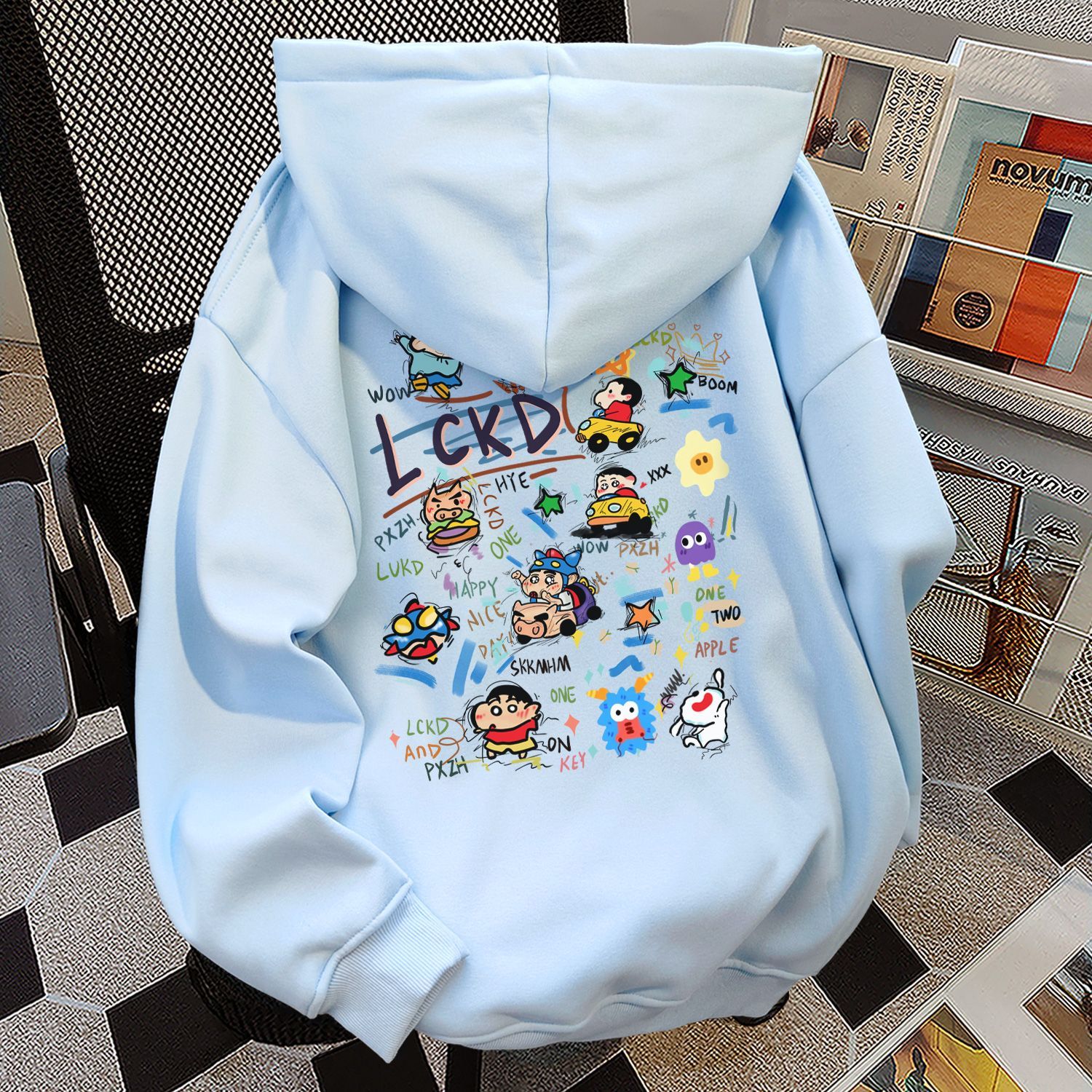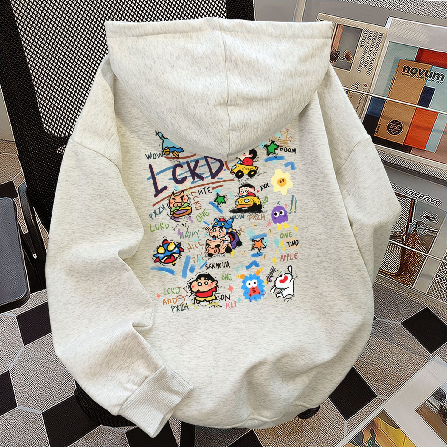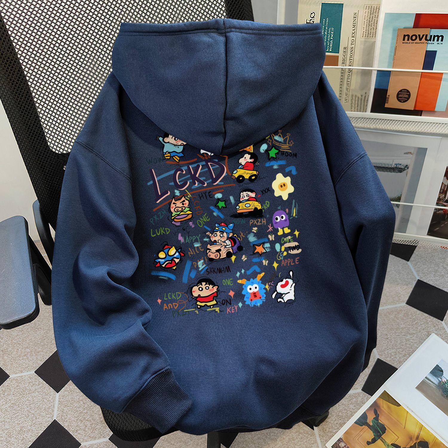 100% 純綿の可愛いクレヨンしんちゃんのフード付きの女性秋冬のゆったりとしたベルベットの厚いカップルの上着の男性