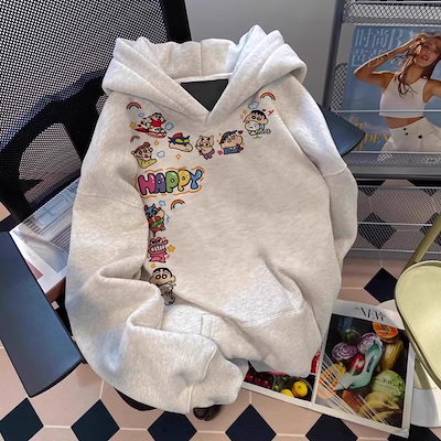 漫画のクレヨンしんちゃんの帽子の衛衣の中の大きい子供の秋冬の新型のベルベットの男女の子供の潮のブランドの子供のコート