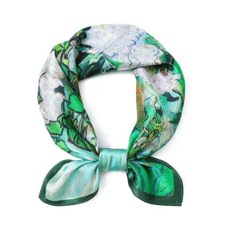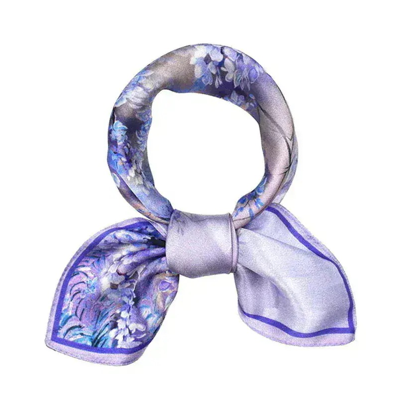 レディース メンズ シルク シルク100% プレミアム スカーフ 53cm 正方形 ベージュ アヤメの花 父の日 結婚式 ネクタイ 代わり として