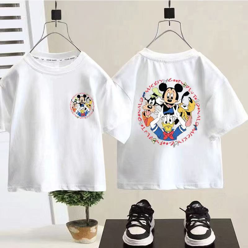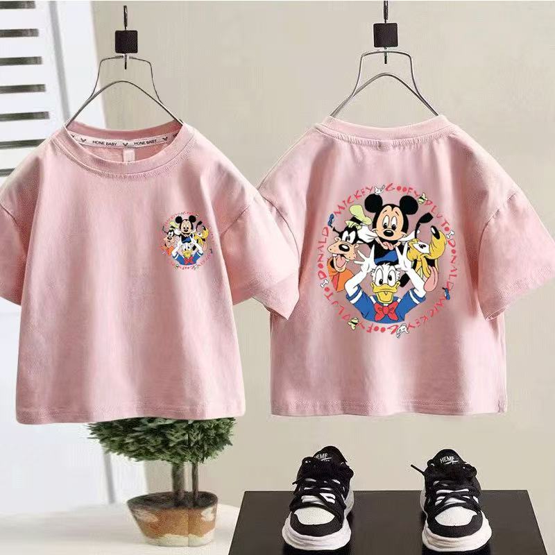 ディズニー新品 ミッキーマウス 子供服 夏 半袖 綿 Tシャツトップス キッズ 通学着 通園着 女の子 キャラクターベビー服 80-140cm
