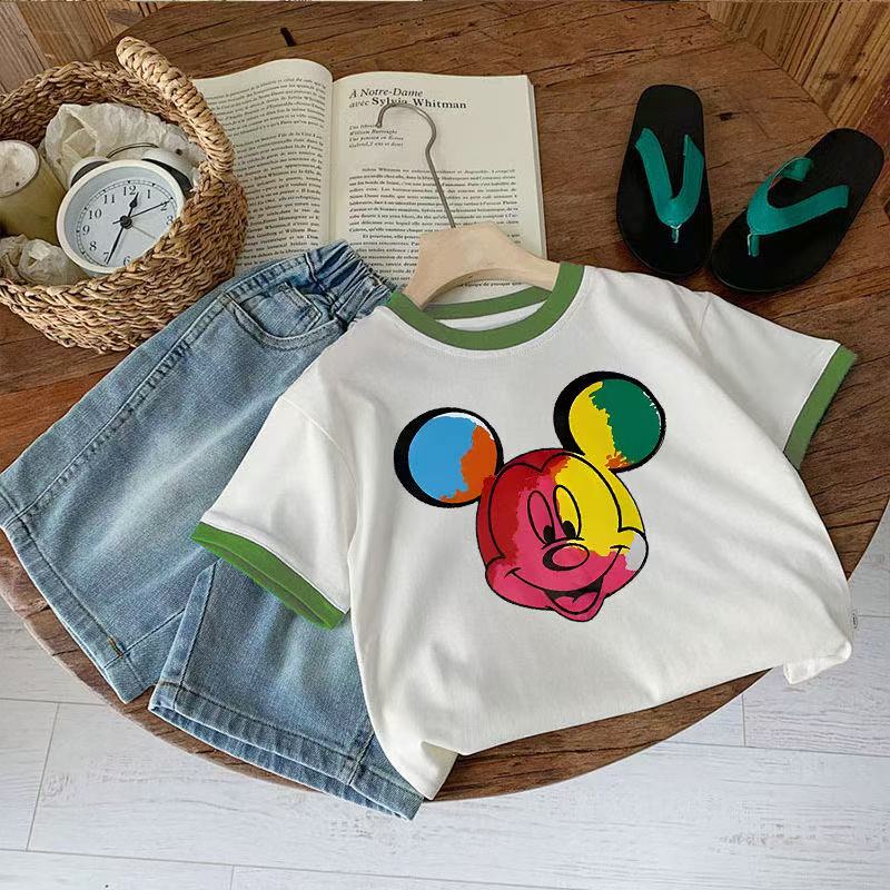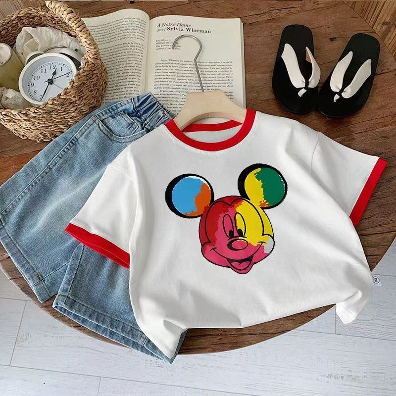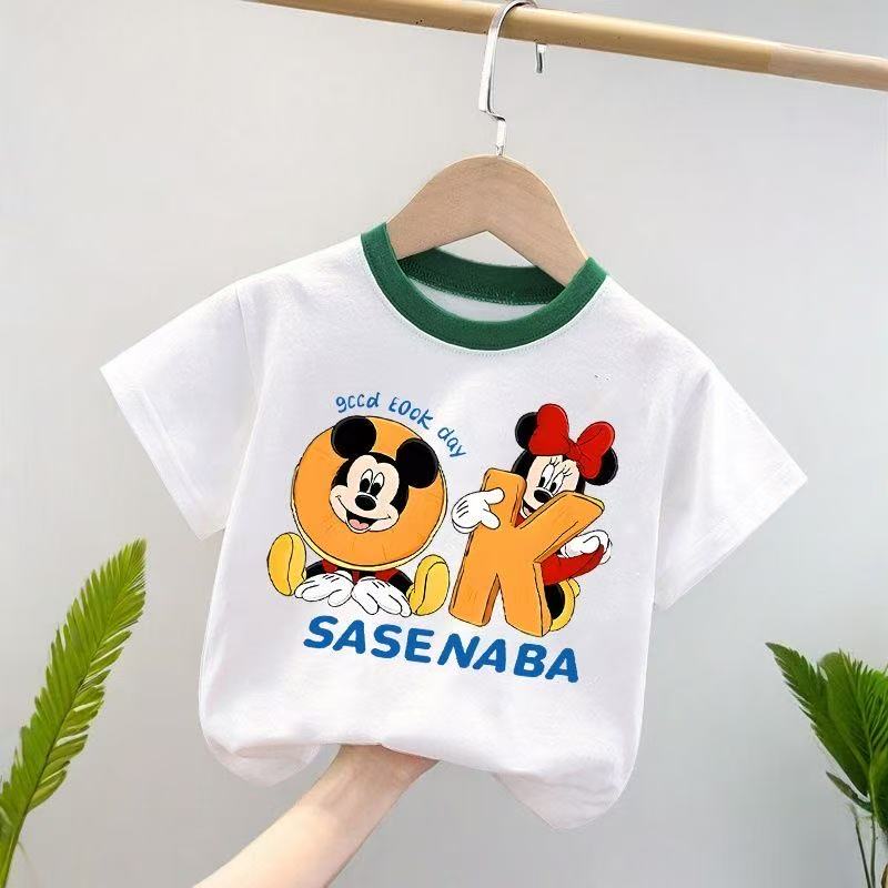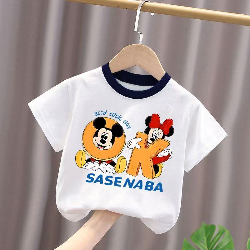 ディズニー新品 可愛い ミッキーマウス 綿 子供服 半袖 夏 Tシャツ トップス キッズ キャラクター 通学着 通園着女の子 男の子ベビー服 80-140cm