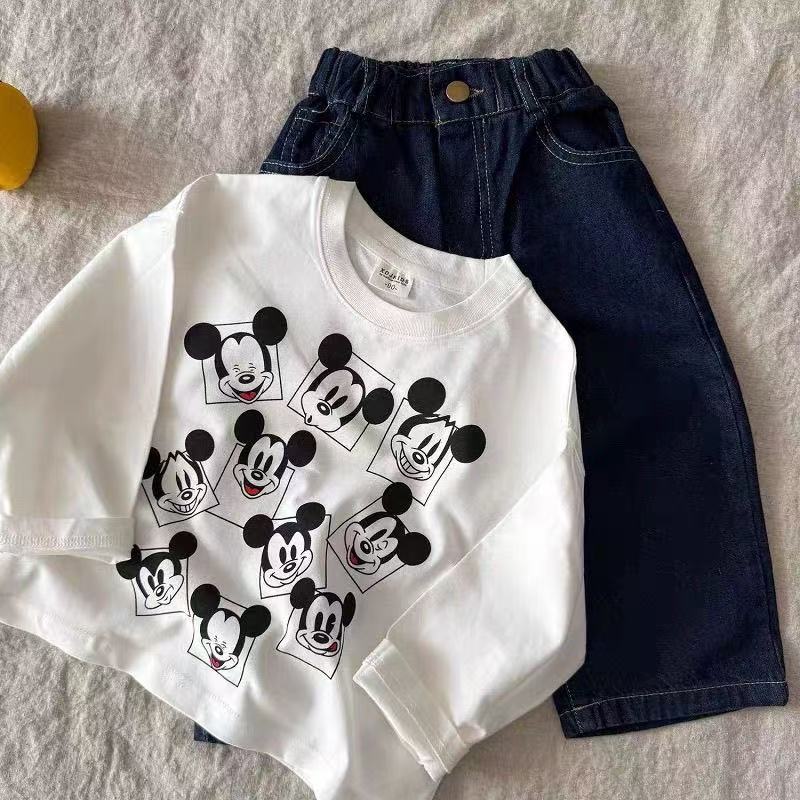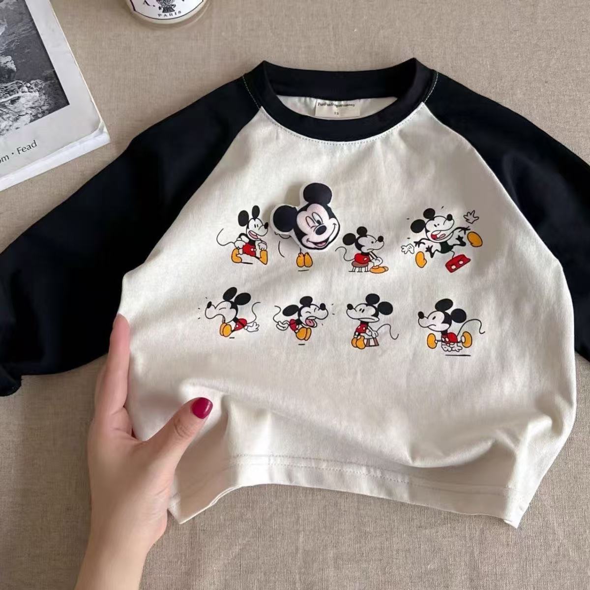 ディズニー新品 ディズニーミッキーマウス 長袖 Tシャツ 綿トップス キッズ キャラクター 男の子 ベビー服 通学着 通園着