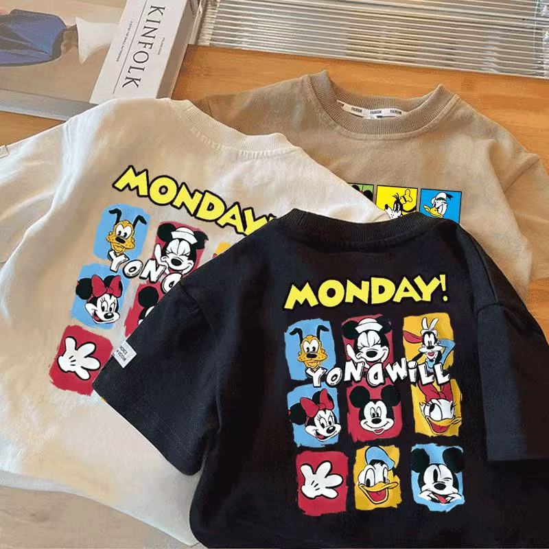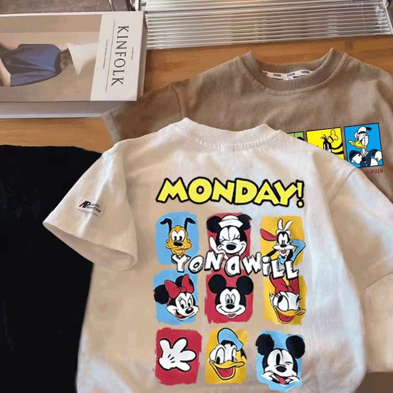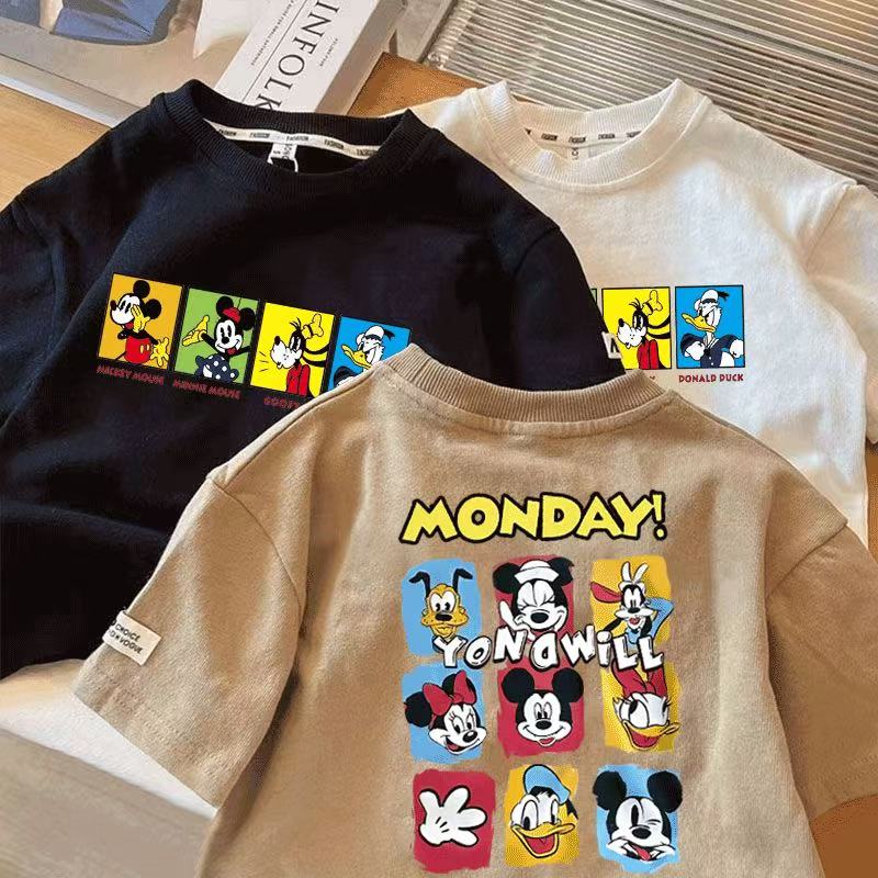 ディズニー新品 ミッキーマウス 子供服 夏 半袖 綿 Tシャツトップス キッズ 通学着 通園着 男の子 キャラクター 80-140cm