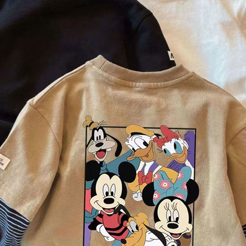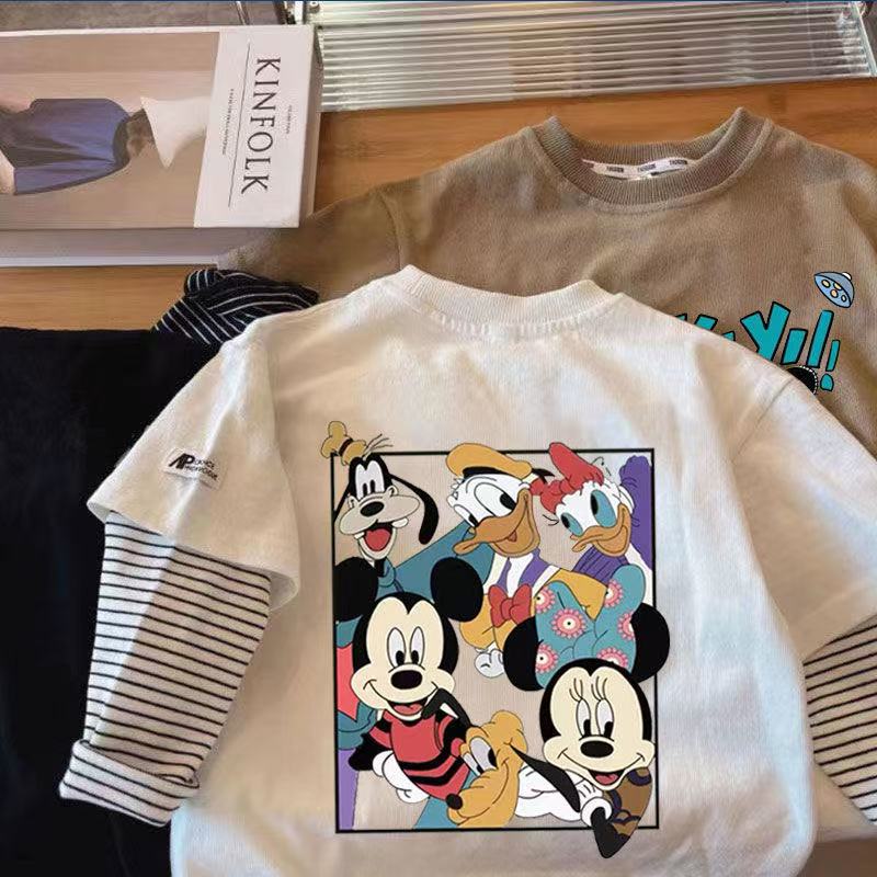 ディズニー新入荷ミッキーマウス 綿 子供服 長袖 春 秋 Tシャツ トップス キッズ キャラクター 通学着 通園着 男の子 ベビー服 80-140cm