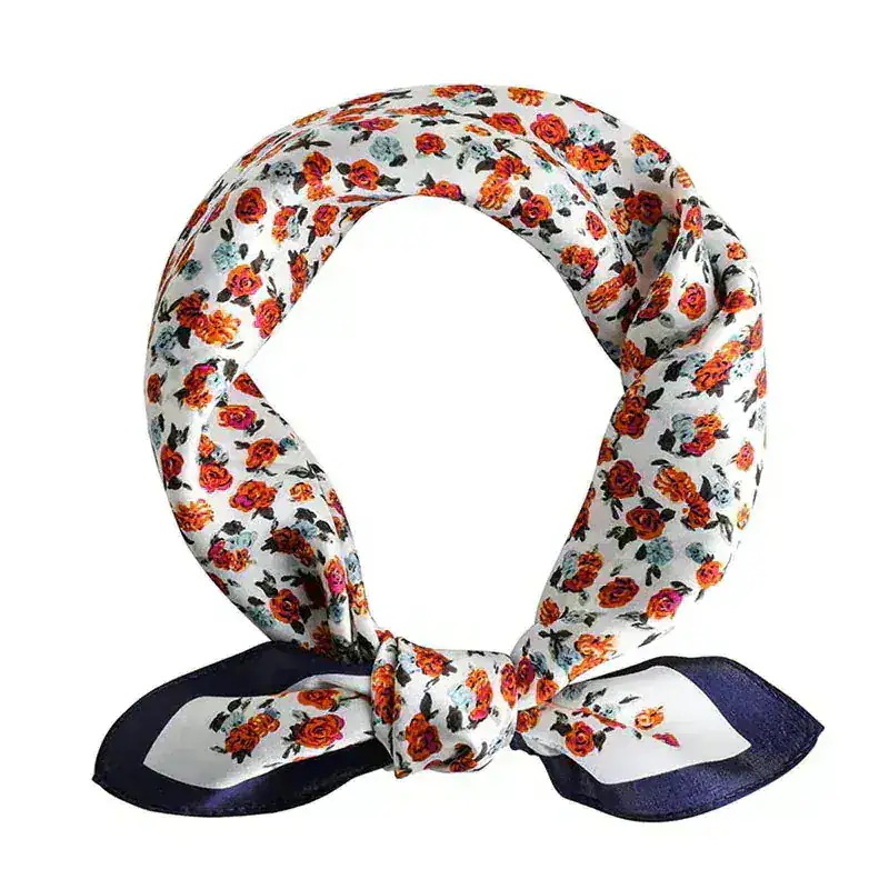 【SALE】ユニセックス スクエアスカーフ 街歩き カフェ に いろいろな結び方 53cm なめらか素材 正方形 緑 花柄 春秋 新年のプレゼント 結婚式 デート に