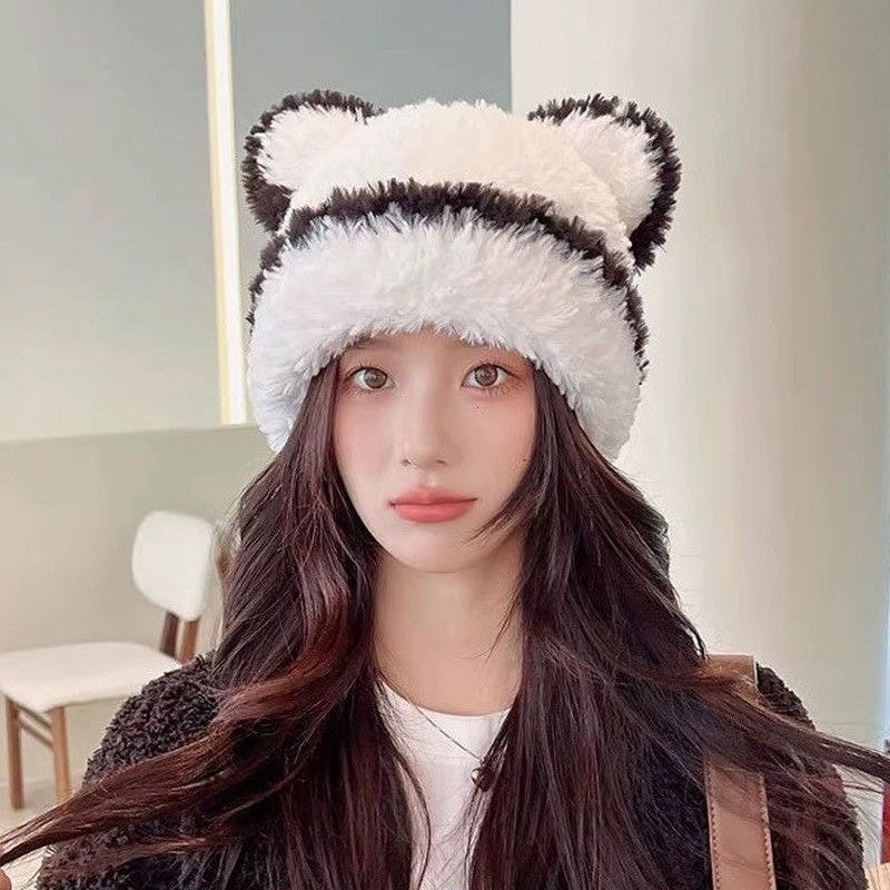 女性秋冬用キュートなクマニット帽日本風キュートスタイル小顔効果プルオーバータイプ厚手保温イヤーマフ