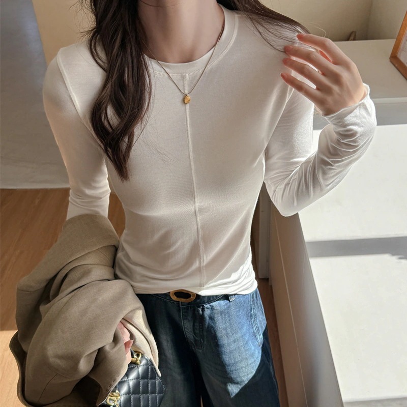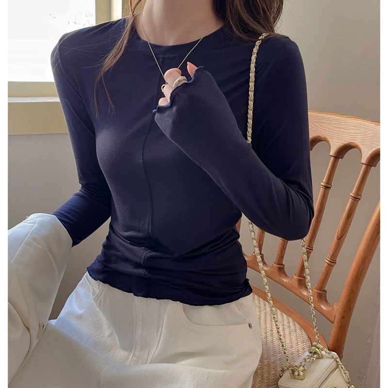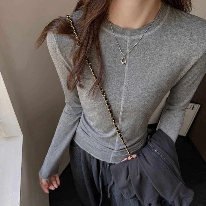 早秋ラウンドネックデザインベースレイヤー レディース インナー秋冬高級感シンプル長袖Tシャツトップス Tシャツ 長袖