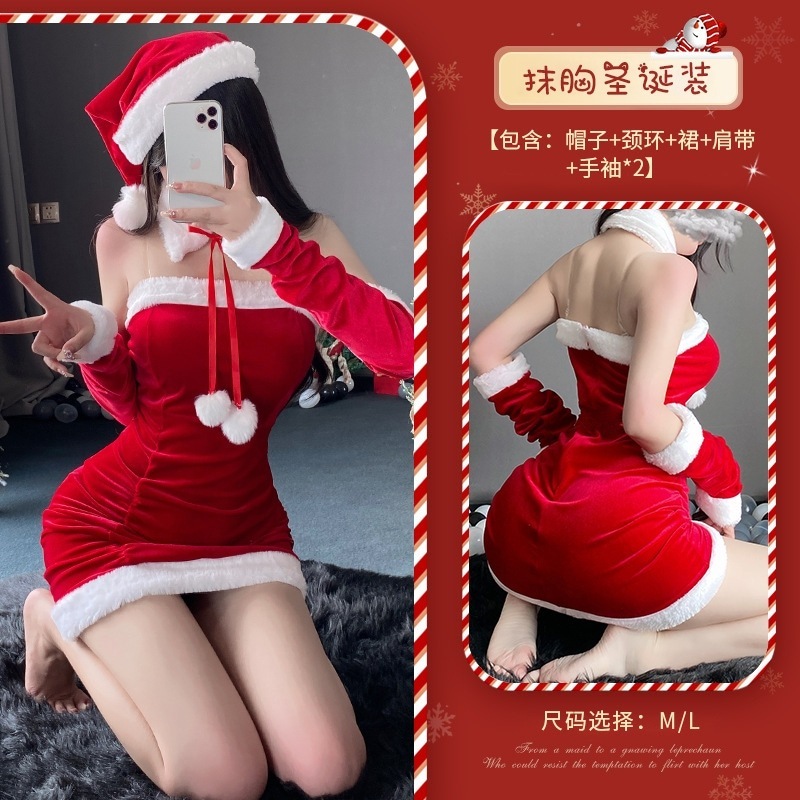サンタコス クリスマス衣装 ボディコン ストラップレスドレス ベルベット セクシー配信者セット コスプレイ 新年舞台衣装クリスマスコスチューム