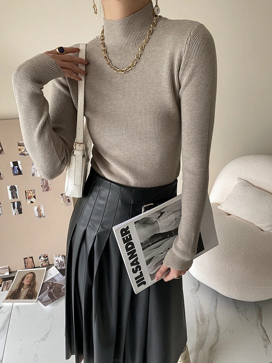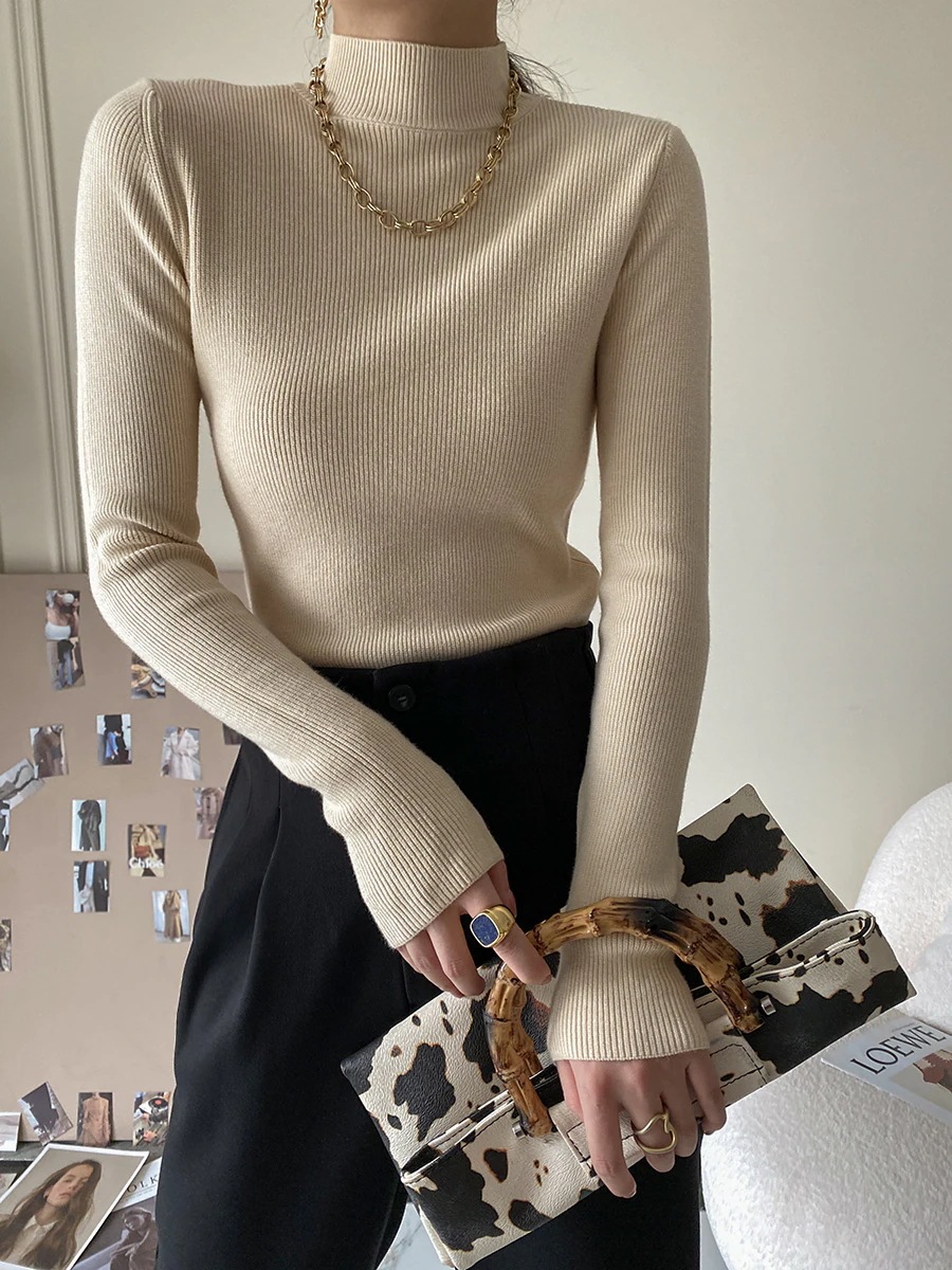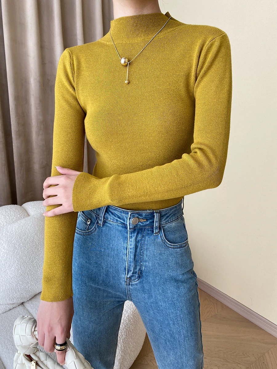 人気ニット 韓国風ハーフハイネック長袖 フィットニット レディース インナー 2025秋冬新作ベーシックニット