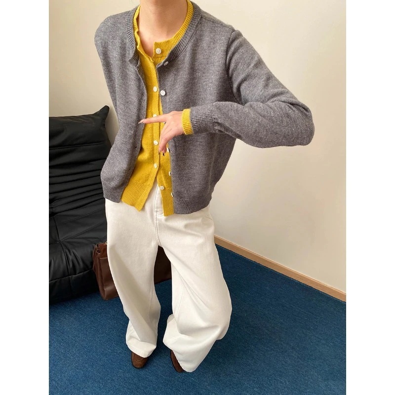 人気ニット おしゃれなフェイクツーピース カラーブロック 細身効果 ニットカーディガンベーシックニット
