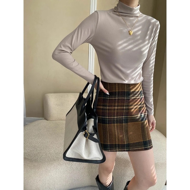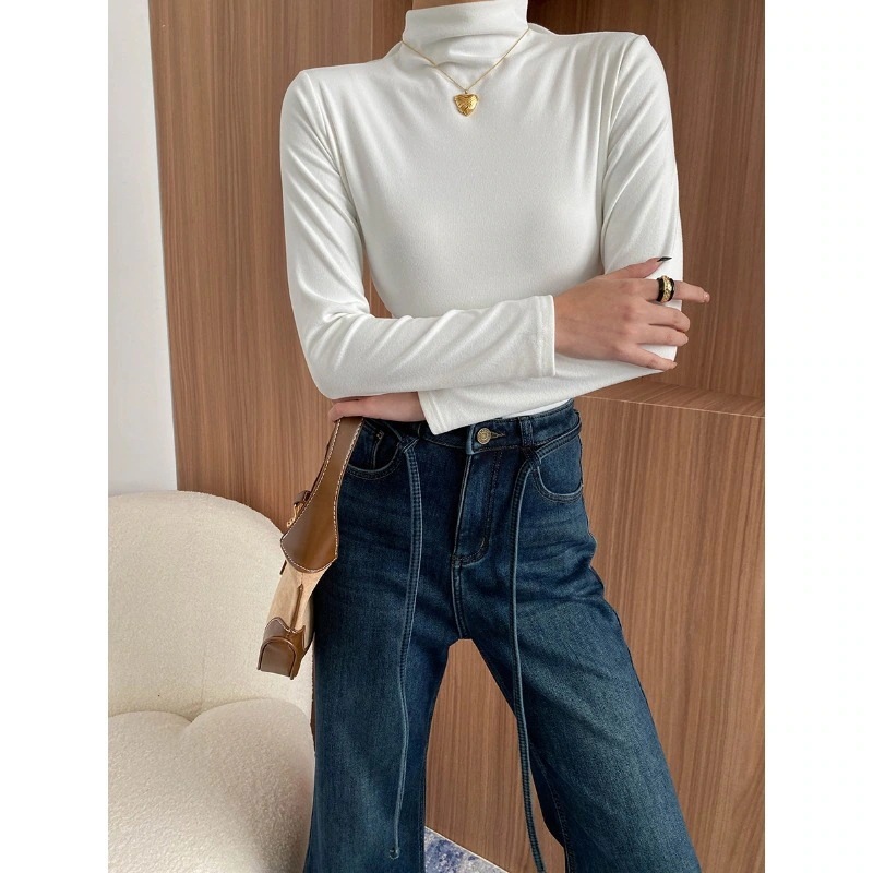 人気ニット ベーシック 肌触り柔らか起毛 ハーフハイネック フィット感 細身効果 万能インナーベーシックニット