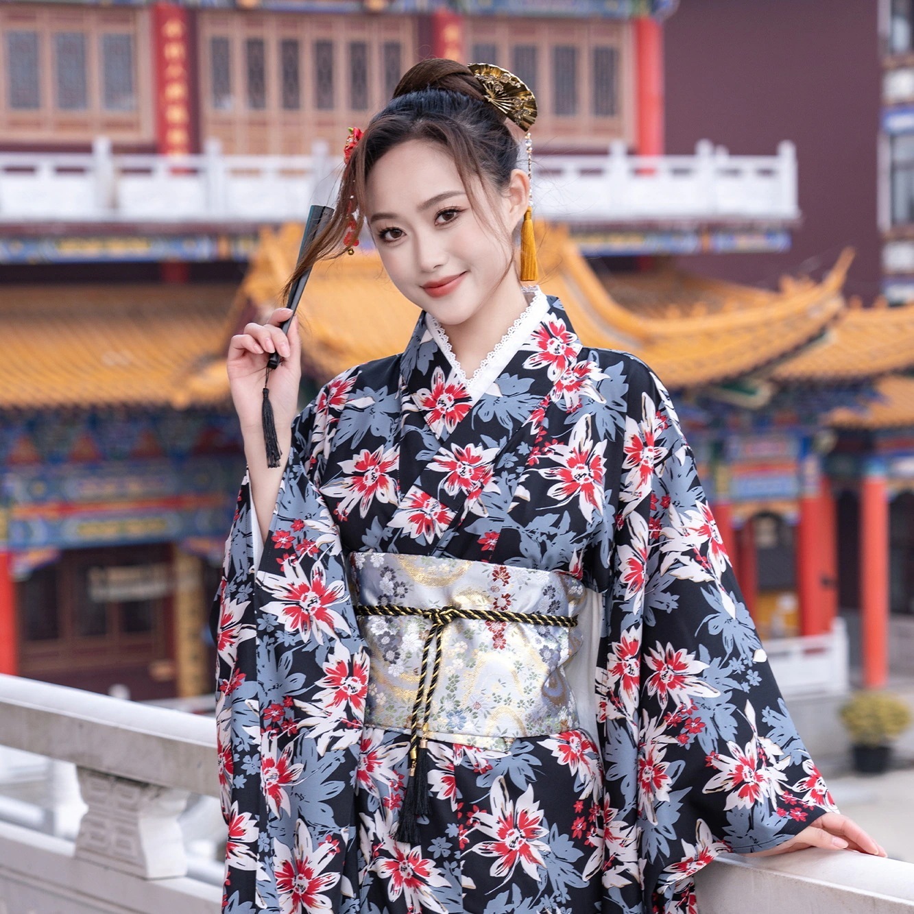 浴衣 レディース 女性の写真衣装正装伝統的なレトロ風改良ワンピース椿の花