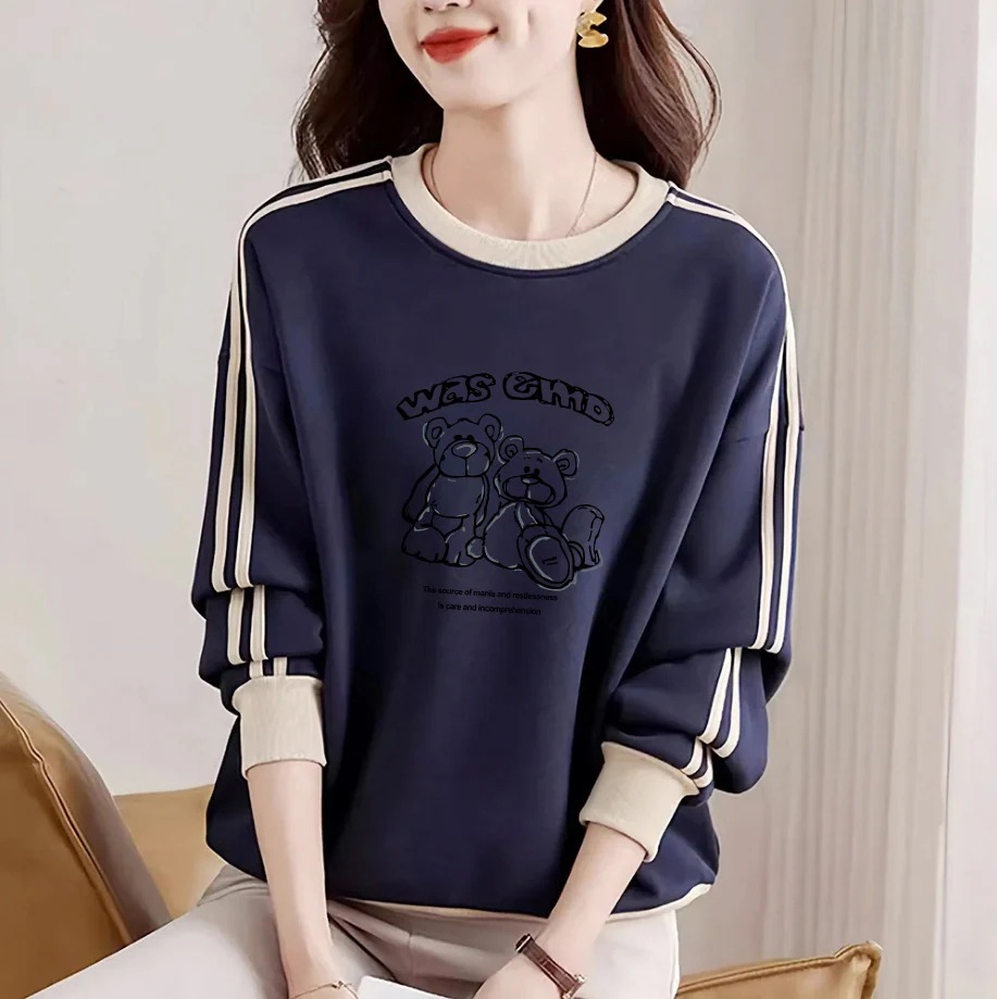 パーカー レディース 純綿長袖プリントスウェットシャツ秋冬ファッション万能キュートなカラーブロックトップス 安い可愛い メガ割