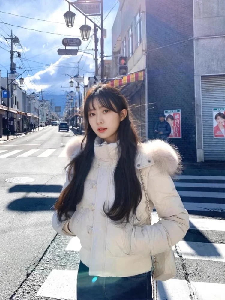 人気 フェイクファー フード付きファーダウンジャケット レディースコート 2025新作 アメリカンレトロ風 厚手保温防寒ショート丈 ダウンジャケット ファー 毛皮アウター