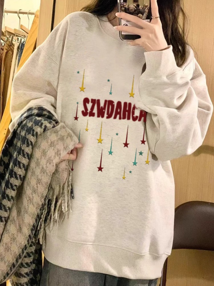 パーカー レディース ホワイトグレー裏地付き厚手スウェット レディース 秋冬ラウンドネックオーバーサイズゆったりカジュアルトップス 安い可愛い メガ割