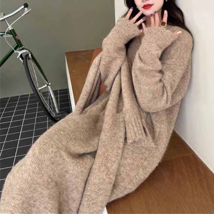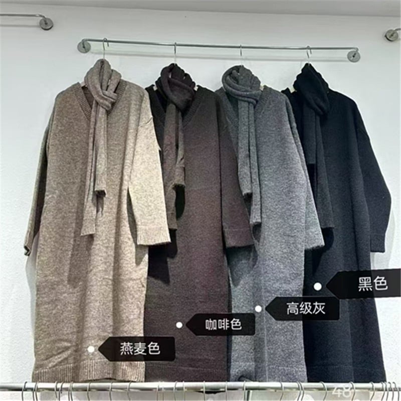 韓国風 ニットワンピース 女性 秋冬 新作 ゆったり インナー セーター ロングスカート