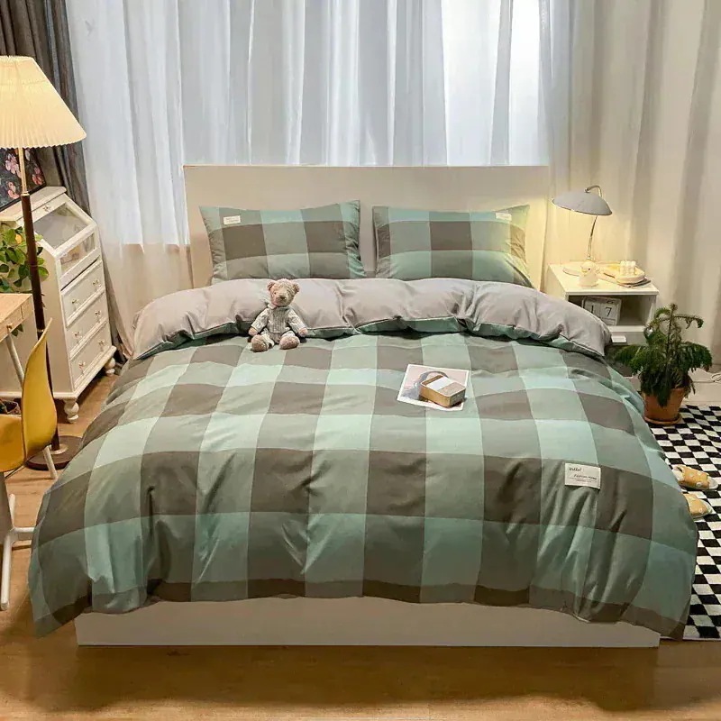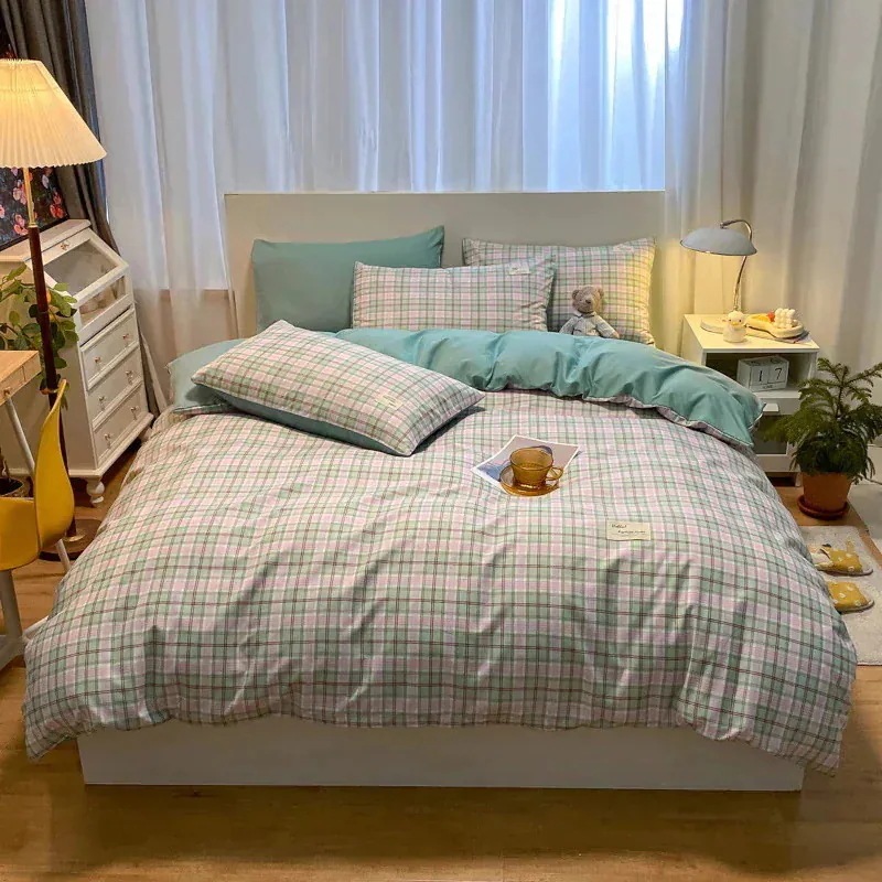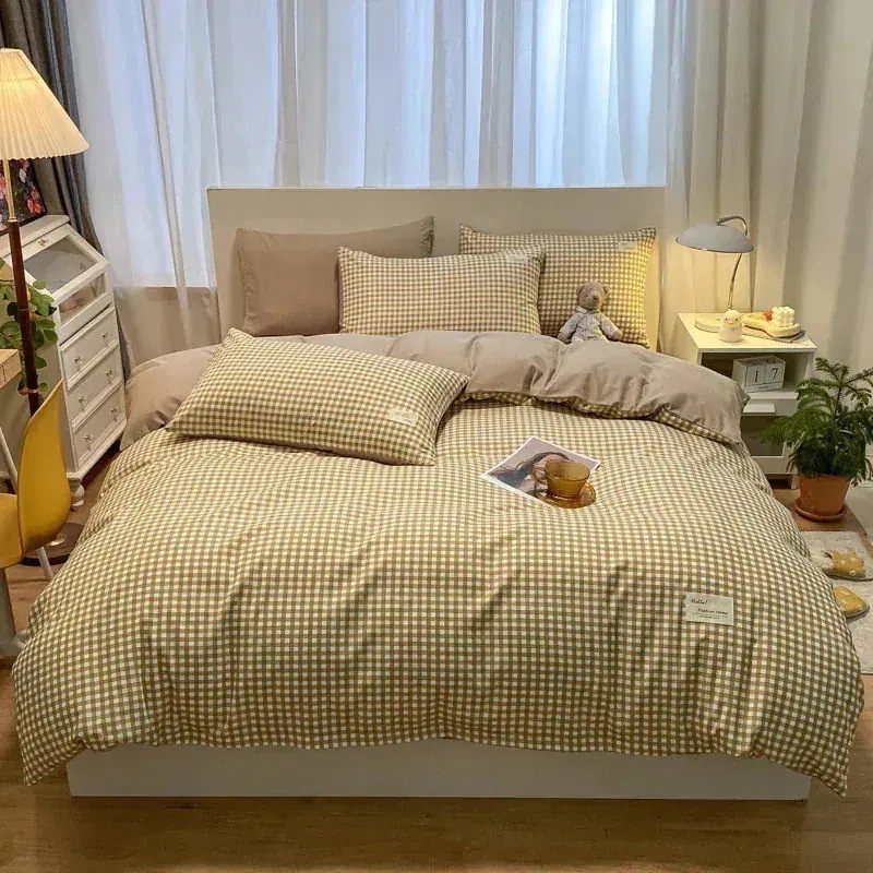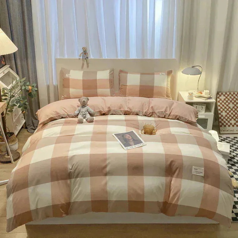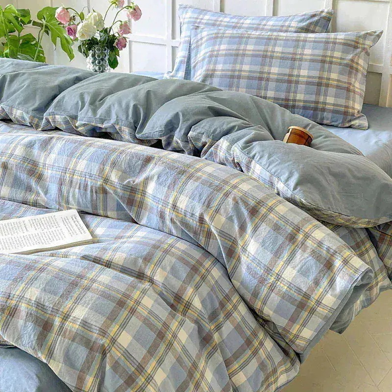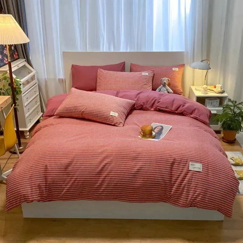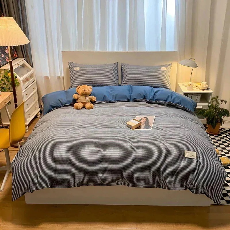 春夏シンプルなウォッシュドコットン4点セットベッドシーツキルトカバー寝具布団カバー 枕カバー寝具4点セット