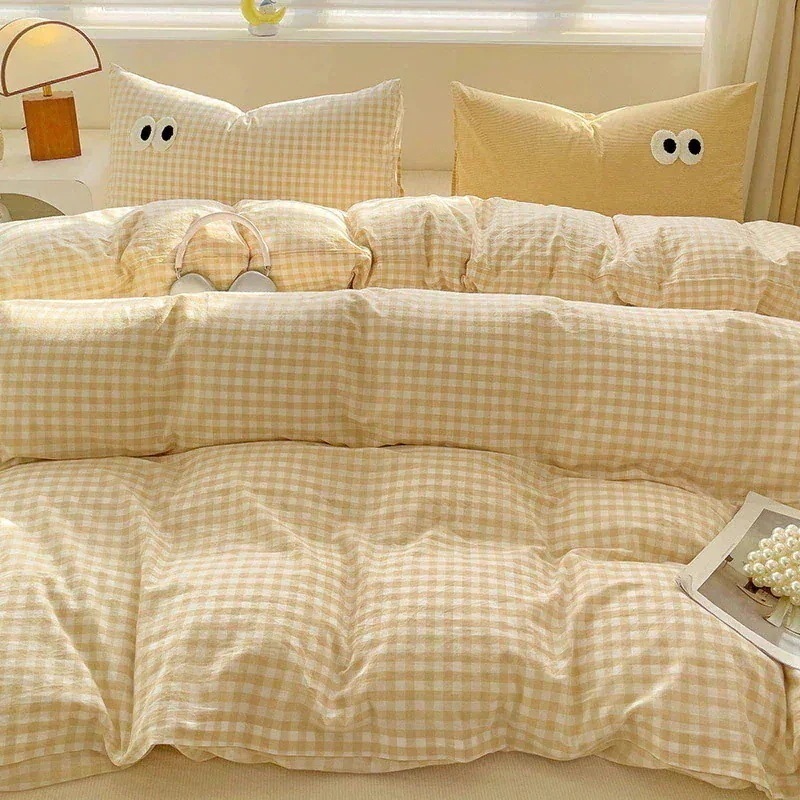 春夏ストライプシンプルな刺繍4ピースベッドシーツキルトカバー寮スリーピースセット布団カバー 枕カバー寝具4点セット