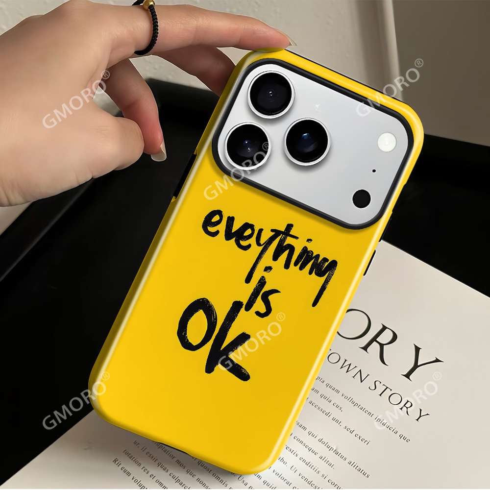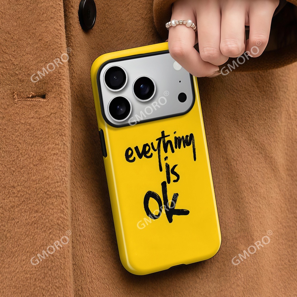 iPhone17ケース 韓国 人気 イエロー英語デザインiPhone17フルカバーケースiPhone16/15対応 スマホケース
