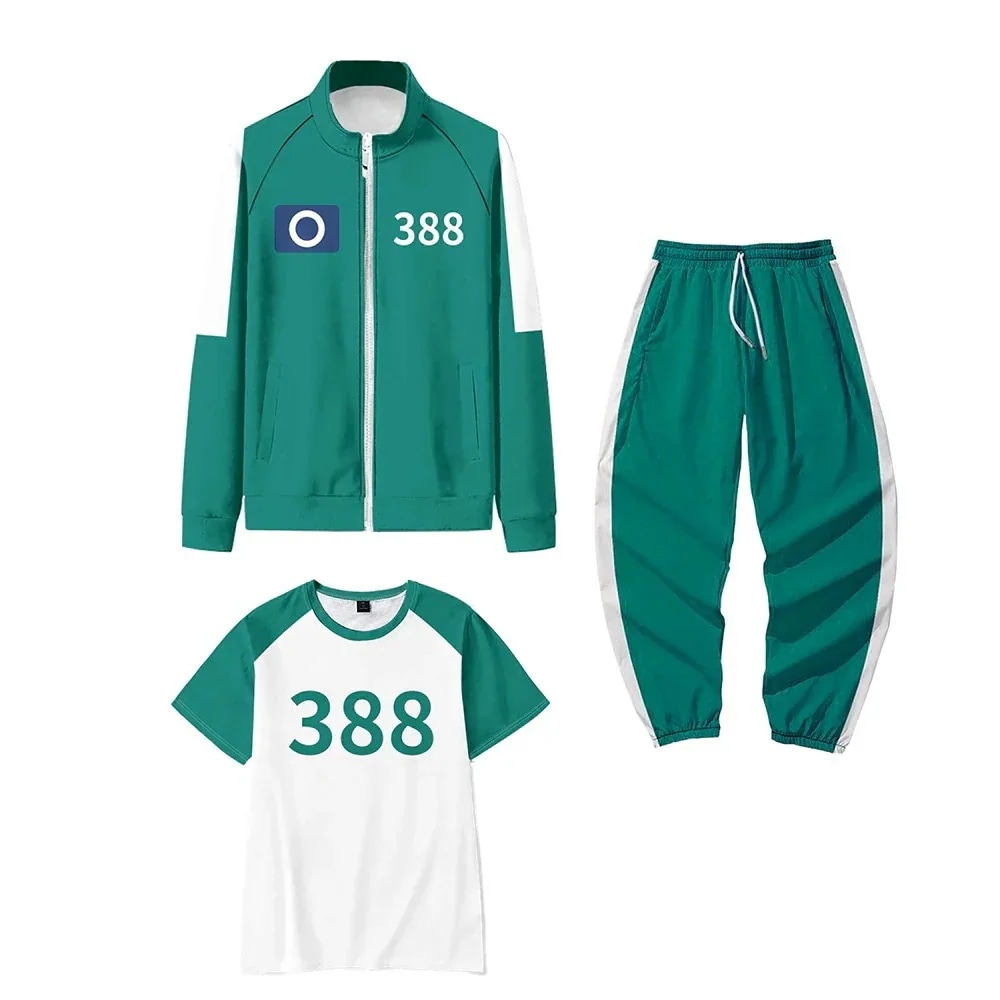 【3点セット】イカゲーム ジャージ コート+パンツ+半袖 ライトグリーン イカゲーム コスプレ Tシャツ 大人 子供服ハロウィン コスプレメガ割