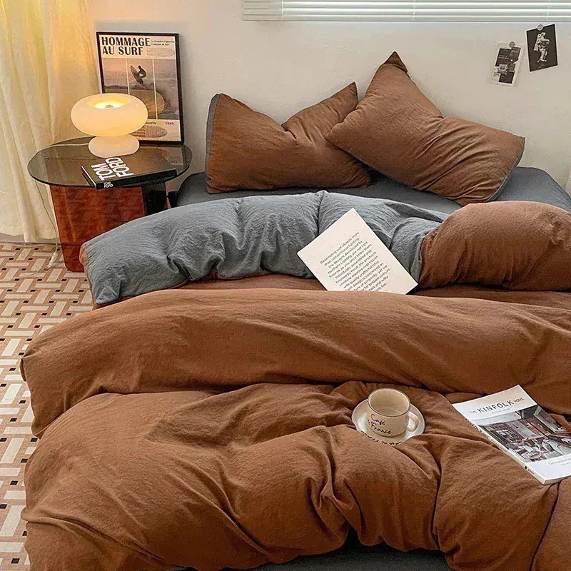 枕カバー 4点セットシンプル 布団カバー寝具3点セット 薄手 柔らかく肌触り ベッドで裸で寝る 布団カバー 春夏
