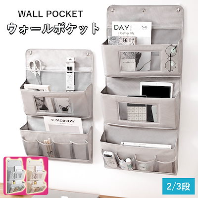 ウォールポケット 吊り下げ収納ポケット 壁掛け収納式 ドアハンガーポケット ドア掛け 2段 3段 取付簡単 工事不要 a4 小物入れ 収納ポケット 粘着フック付き 雑誌 手紙 レター リモコン 寝室