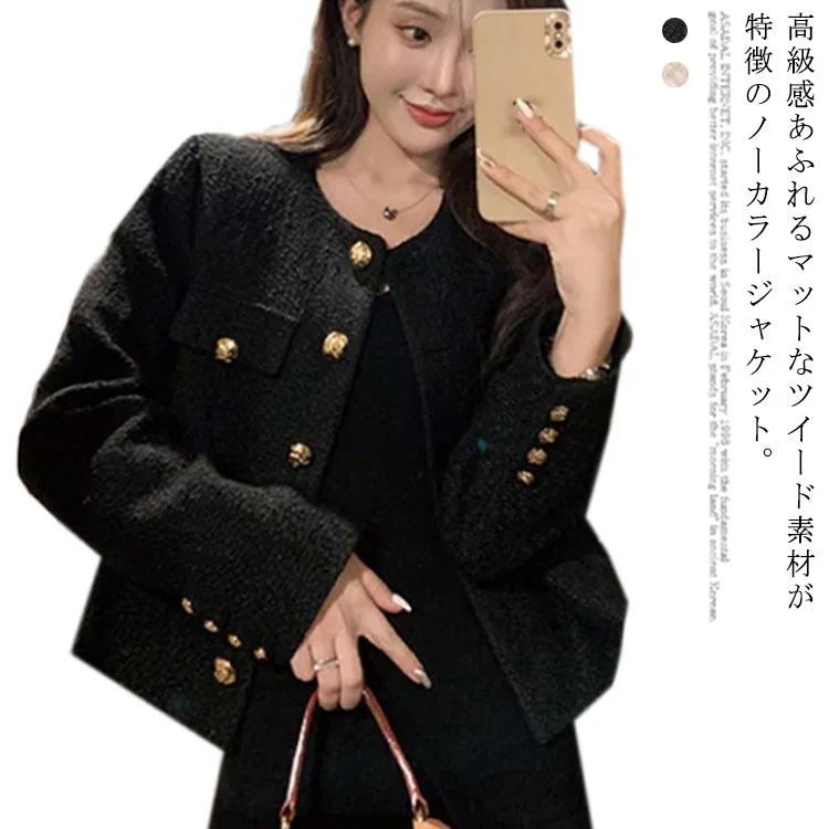 ツイードジャケット ノーカラー ジャケット レディース ライトアウター 長袖 ショット丈 ツイードコートフォーマル 入学式 卒業式 入園式 結婚式 お宮参り 七五三 服装 母親 代 30代 40代