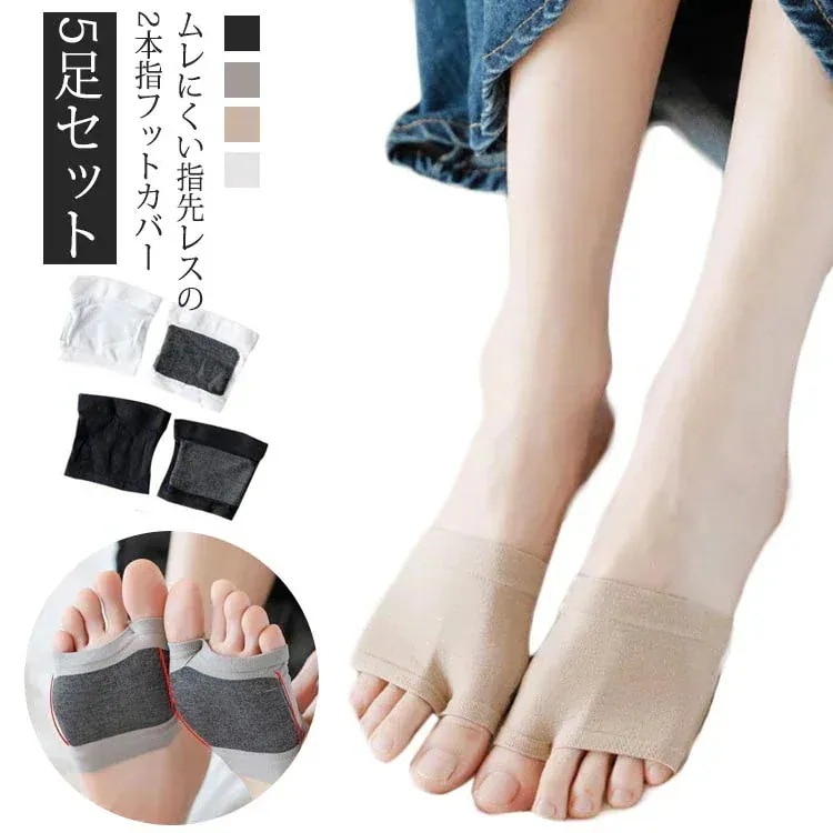 フットカバー 5足セット つまさきソックス 2本指ソックス 指先なし 足袋ソックス つま先靴下 サンダルソックス つま先だけ 2本指靴下 レディース インナーソックス 蒸れない 脱げない かかとなし
