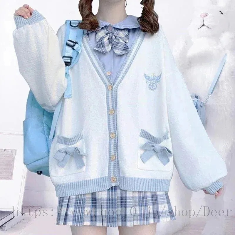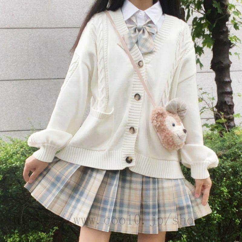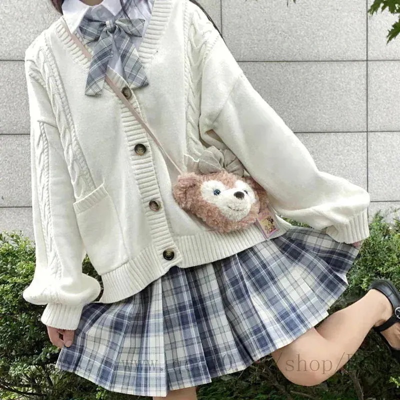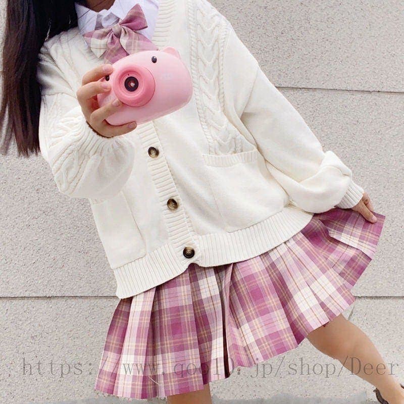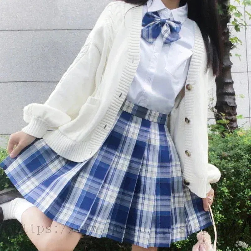 4点セット制服11色 ニットカーディガン+ プリーツスカート +ブラウスファ+リボン本ッションスーツ