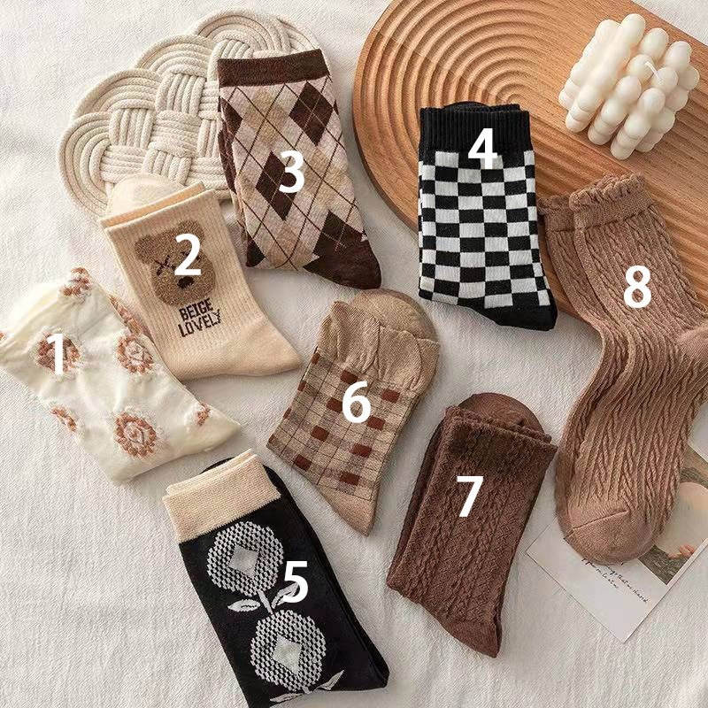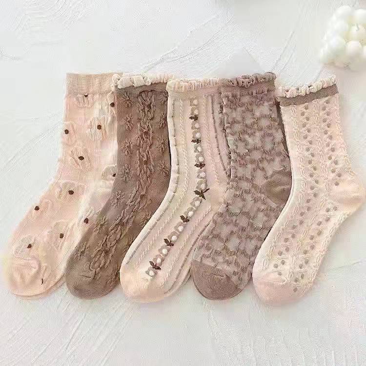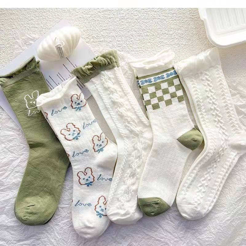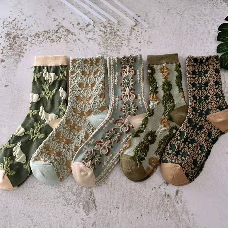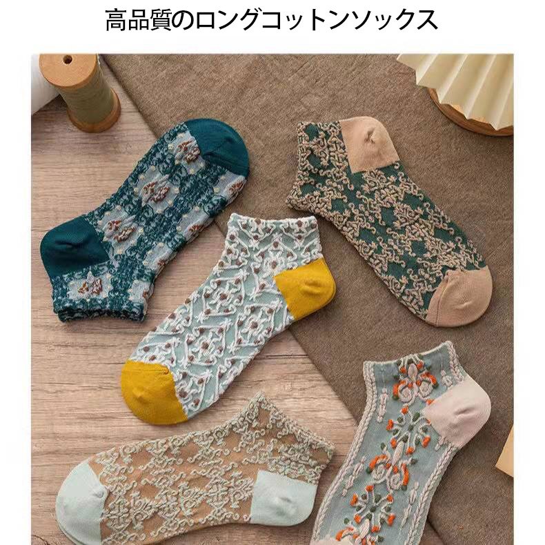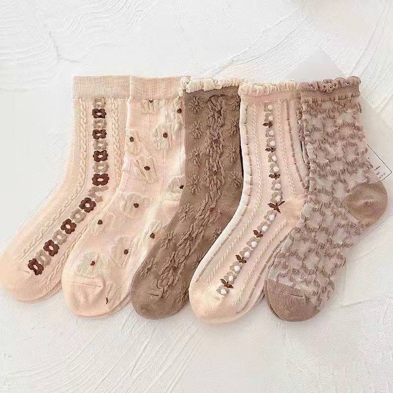 靴下 立体ジャカード 女性の韓国スタイル 漫画のパイルソックス 5ペア ハイウエストソックス