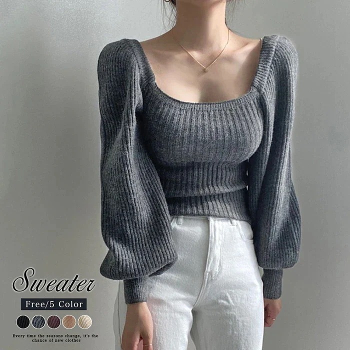 初新ニット セーターの女性 モデルしたタイプ服 プルオーバーソリッドカラー