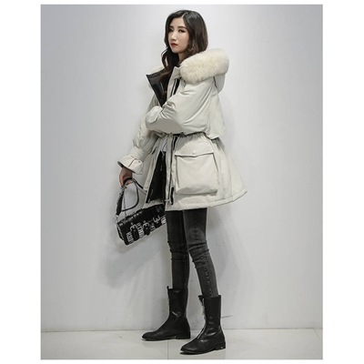 中綿コート レディース ウエスト帽子付き ポケット付き ファーフード付き ひざの上 4color アウター 着痩せ 暖かい 可愛い 防寒 長袖 服