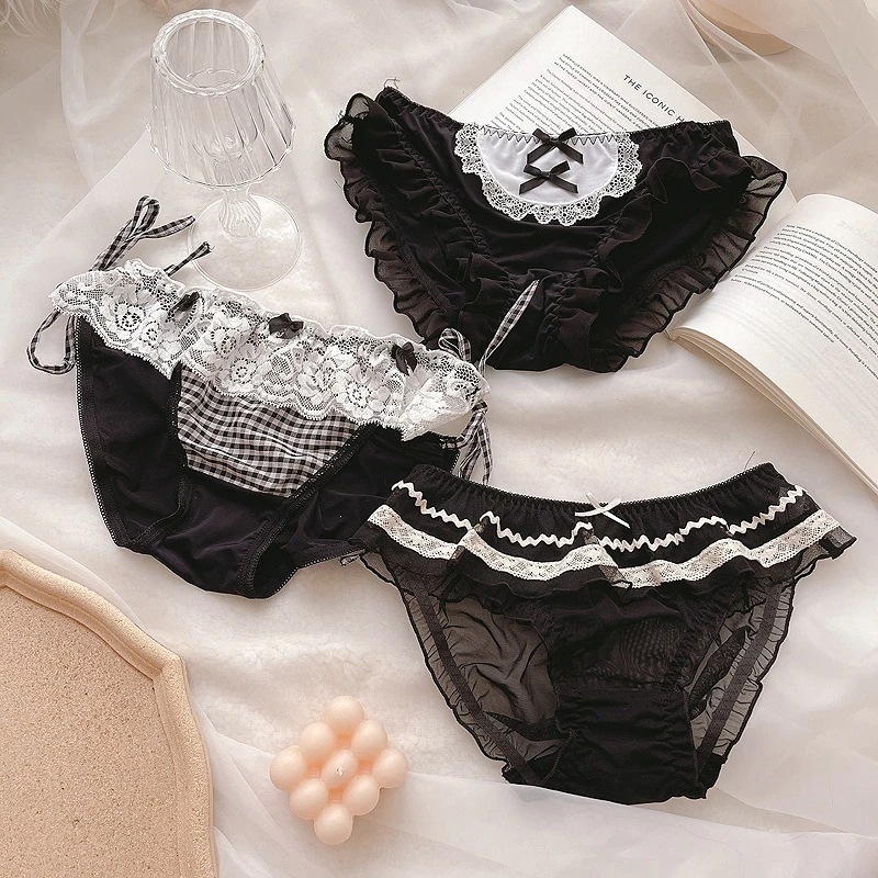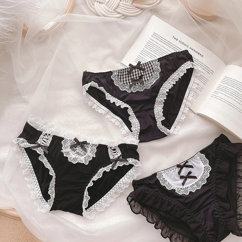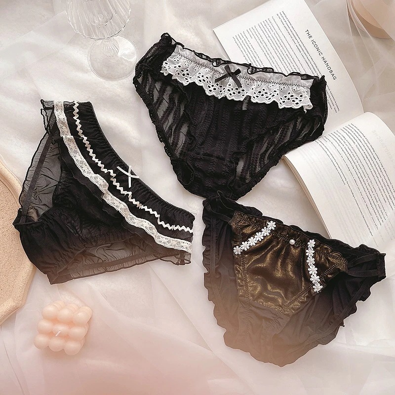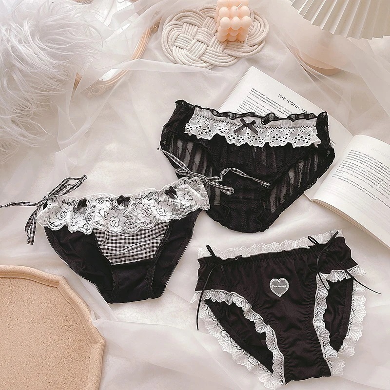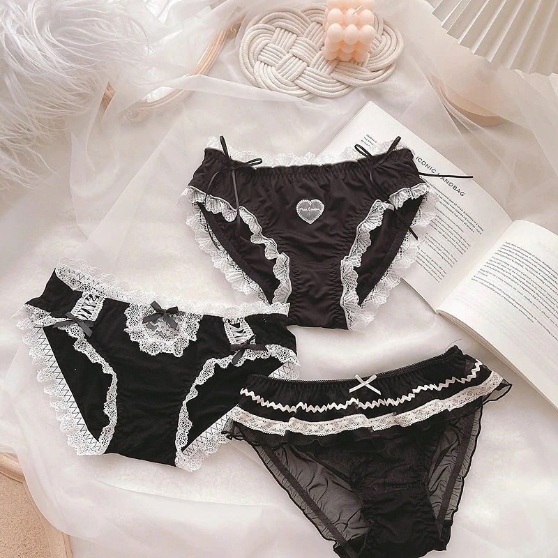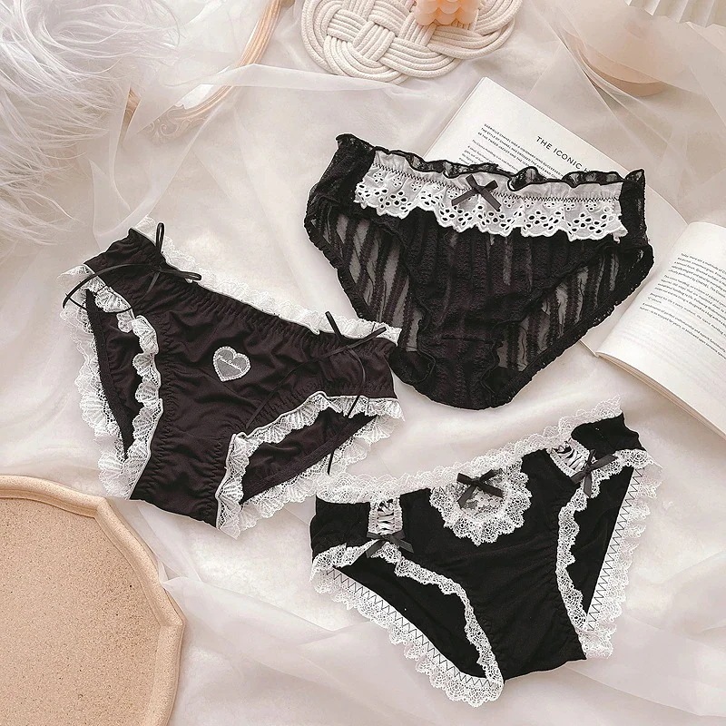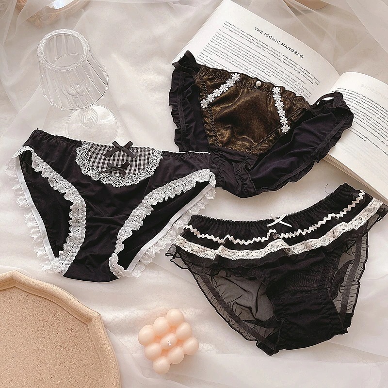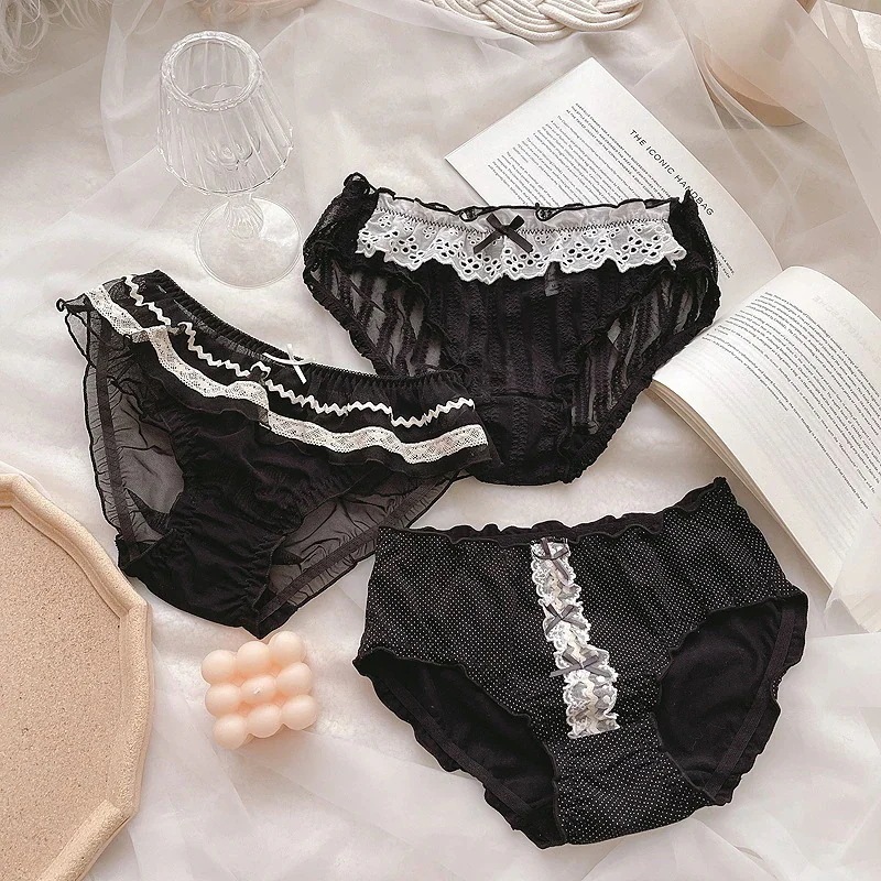 ショーツ 韓国ブラック召使いロリータ女の子セクシーリボンモーデールミルクシルク3枚