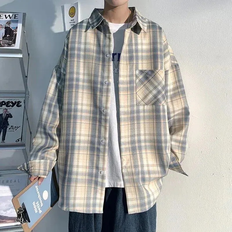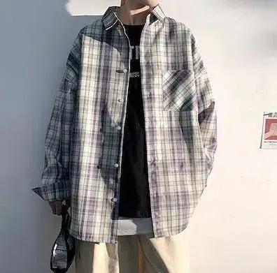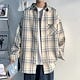 メンズファッション 今っぽシアーシャツ感チェックシャツ男韓版百搭港風日系シャツ服