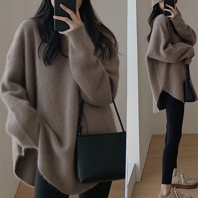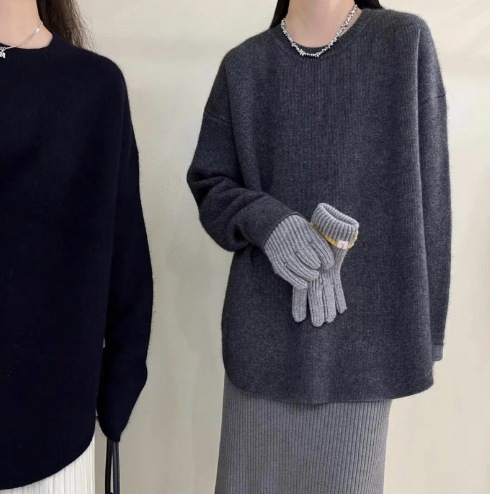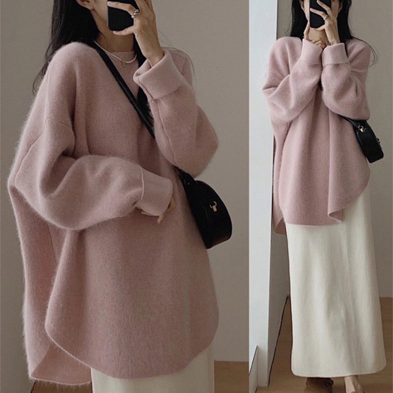【本日限定】リブニット カシミヤタッチニットセーター レディースゆったりスウェット 秋冬 高級感 長袖ニットトップス 韓国ファッション 優しい百掛け カシミヤタッチ ベーシックニット