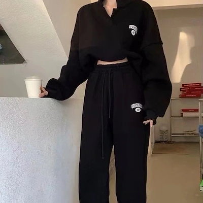 セットアップ 韓国ファッション 新作 運動セット涼しく楽ちんセット秋冬ジャージ二点セット運動セットおしゃれ百掛け長袖無地デザイン感ニッチカジュアルスウェットズボン