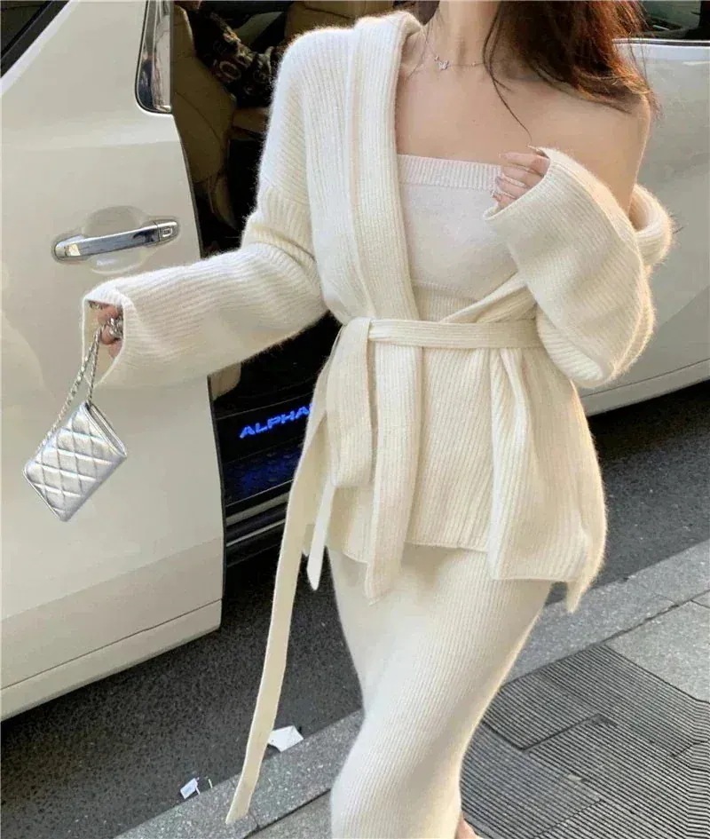 セットアップ 韓国ファッション 新作 運動セット涼しく楽ちんセットニットセットアップ 三点セット 上下セット 秋冬 レディース ニットカーディガン セーター ニットスカート タイトスカート