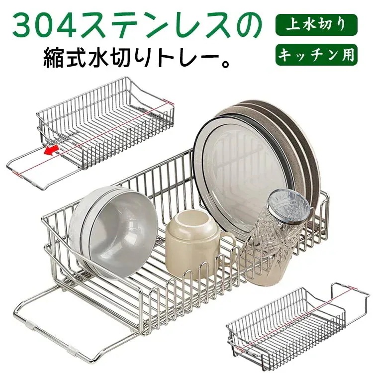伸縮式水切りカゴ 水切りラック シンク上 水切りトレー 食器 水切りかご 包丁 洗い物 洗いやすい 水切りカゴ スリム 水切り 伸縮 キッチン ラック 伸長式シンク上水切り キッチン用73