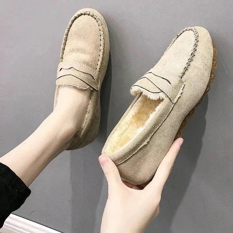 5色人気 バブーシュトット靴フラットシューズ革張り柔らかい底ボアコットンシューズモカシン ファーシューズ 靴 モカシン 裏ボア もこもこ フラット ぺたんこ レディース パンプス