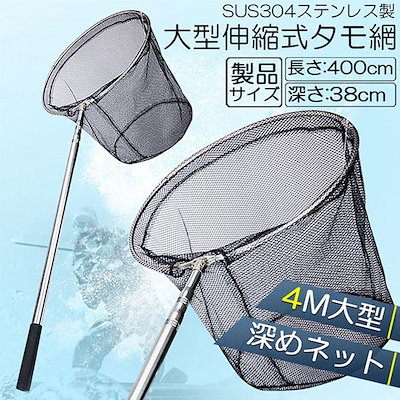 [jiang]新品追加 タモ網 2本セット 玉網 タモ網 ランディングネット伸縮式 すくい網 丸形網 折りたたみ式 調節可能 軽量 釣り用品 漁具 淡水 海水適用 全魚種対応 長さ4M